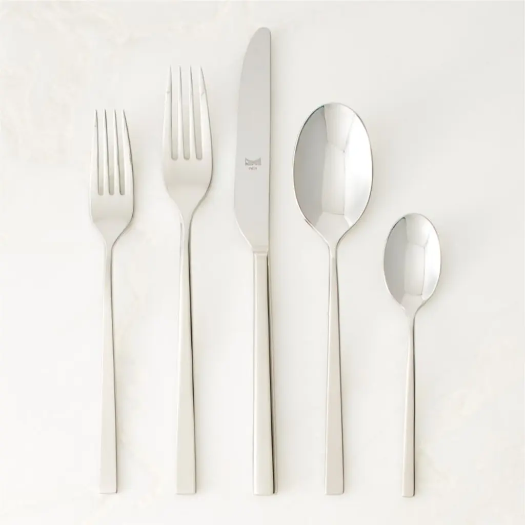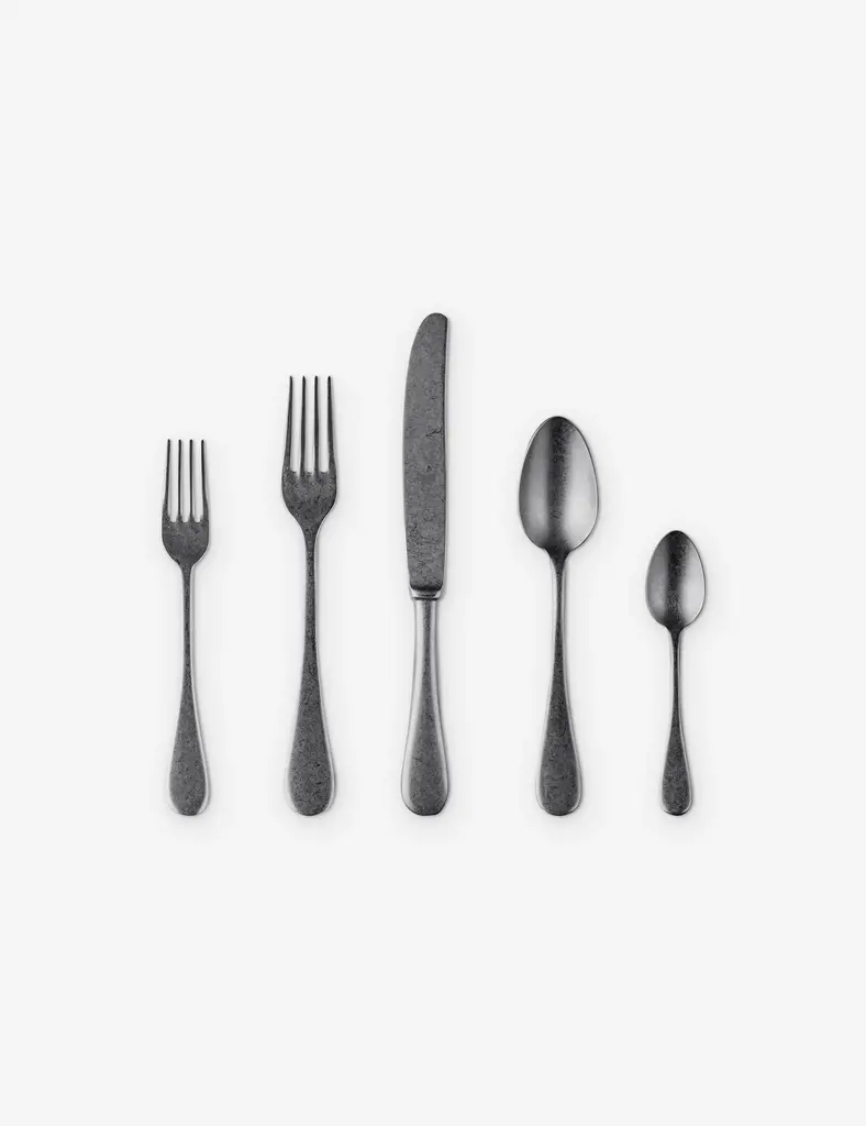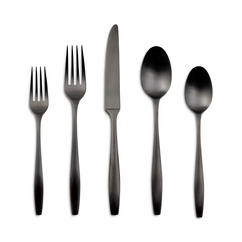 We designed the Lilia Flatware set to bring both bold and timeless elements to the dining table. Crafted from stainless steel in two finishes, this collection makes a statement without monopolizing the conversation. Its design is clean and streamlined, and every piece has a weighted, heavy feel that makes every use an elevated experience. The set includes a teaspoon, dinner spoon, dinner fork, salad fork, and dinner knife.