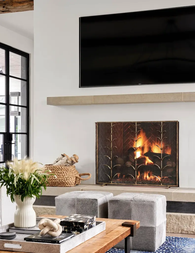 Elevating the art of the fireplace screens to new heights, the Lily Stems screen features uniquely formed leaves that seem to delicately emerge from the stems. Each leaf is formed and individually hand bent, ensuring no two are alike. The result is a piece of art that is as beautiful from afar as it is up close. The graceful and softly organic curves of this fireplace screen are sure to enhance any room in which it is placed. Equally stunning as it is functional, this piece adds charm to any decorating style.Every fireplace screen we offer is unique, with slight variations, due to the artisan nature of our hand-forged and hand-applied finishing process. Handmade of solid iron in the U.S.A, it is available in seven hand-painted finishes and ships in 6-8 weeks.