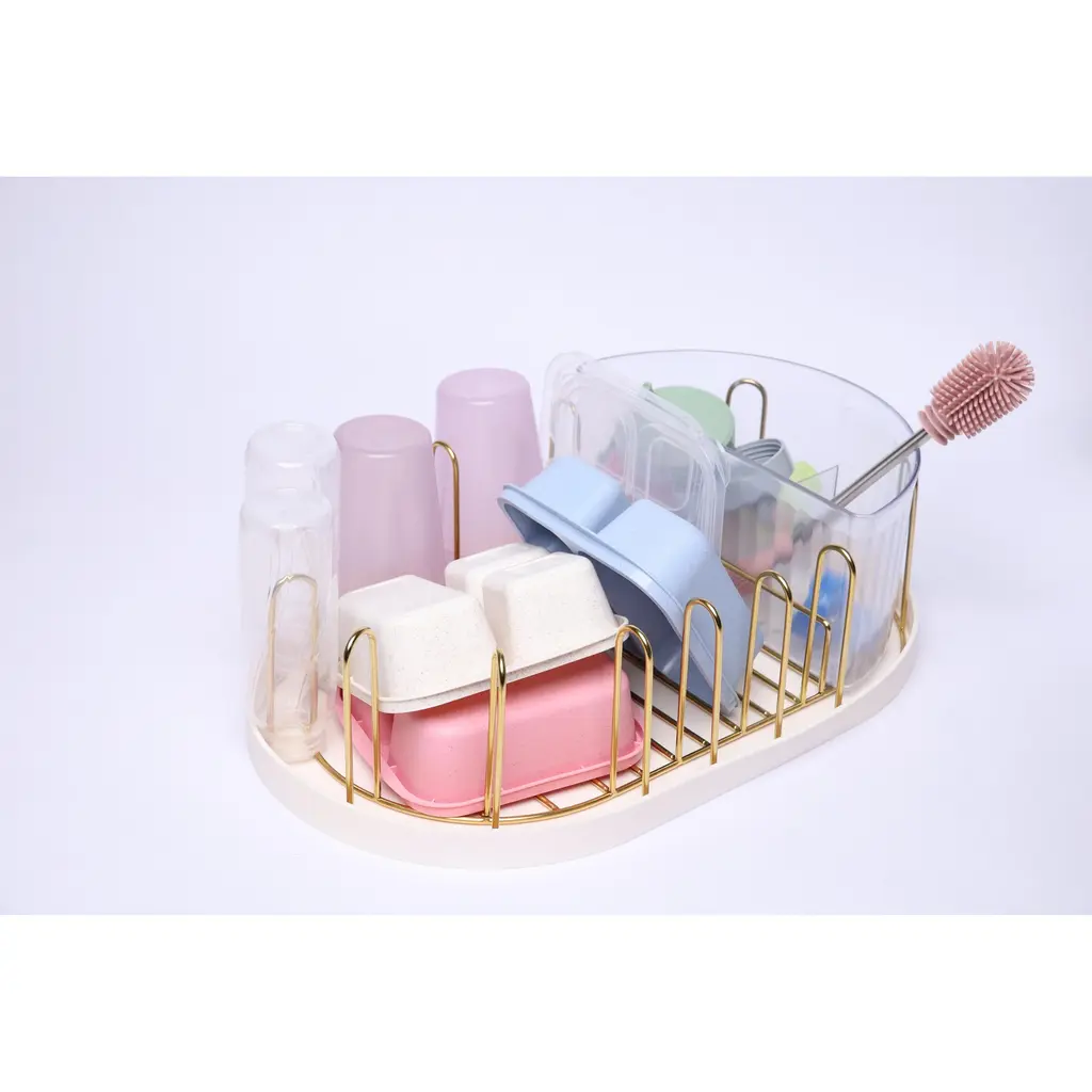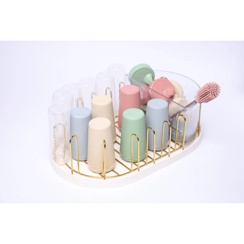 Upgrade your kitchen with the Airess Drying Rack by Winnie & Lu, the ultimate luxury baby bottle drying rack and aesthetic kitchen organizer. Crafted from electroplated gold stainless steel and food-grade silicone, this eco-friendly drying rack holds a full day's worth of baby bottles, pump parts, sippy cups, tumblers, and even wine glasses. Its sophisticated design transitions seamlessly from a baby essential to a lifelong home staple, making it a top pick for baby registries and wedding registries alike. Key Features: Premium Gold Stainless Steel: Rust- and heat-resistant for lasting beauty and durability Eco-Friendly Silicone Base: Food-grade, BPA-free, stain-resistant, and recyclable for sustainable living Spacious & Versatile: Holds bottles, pump parts, toddler dishware, kitchen essentials, and barware. Effortless Cleaning: All parts are top-rack dishwasher safe for easy maintenance. Accessory Cup: Durable, glass-like cup for small parts, reusable and recyclable. Lifetime Warranty: Backed by a lifetime guarantee from a women-owned, small business. Gift-Ready: Ideal for baby showers, housewarmings, and wedding registries.