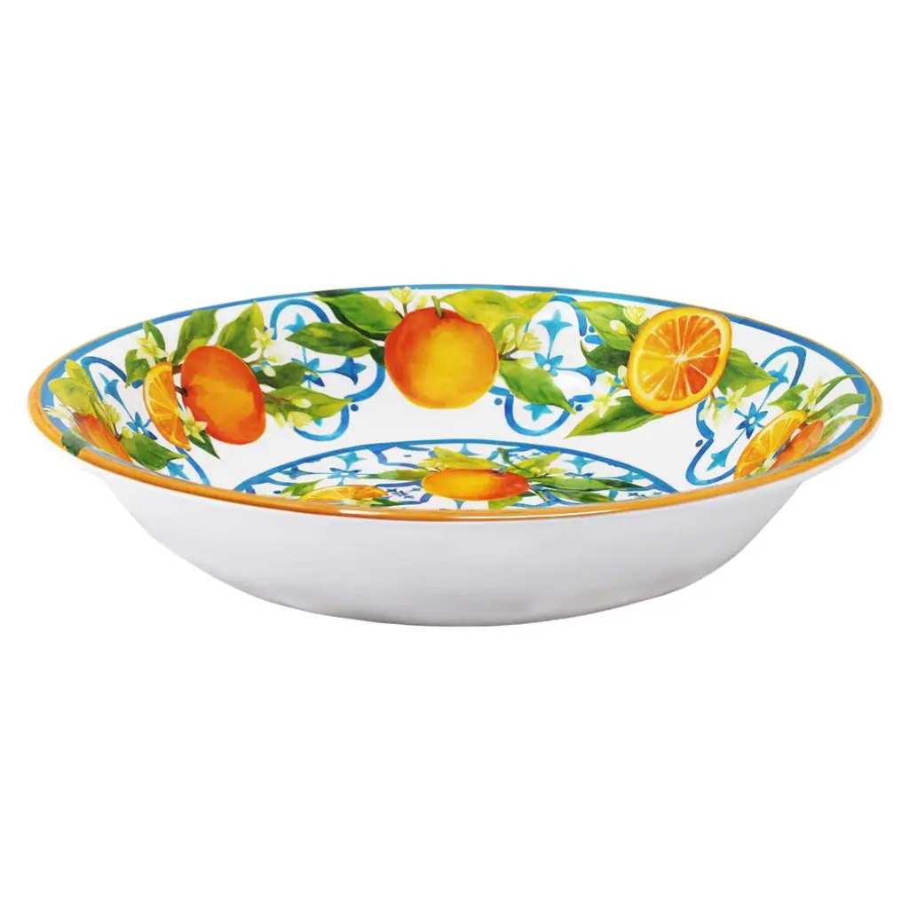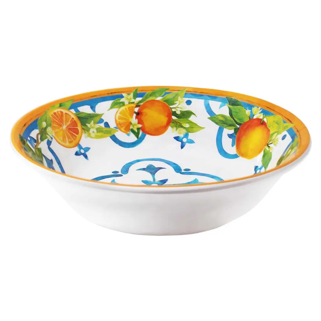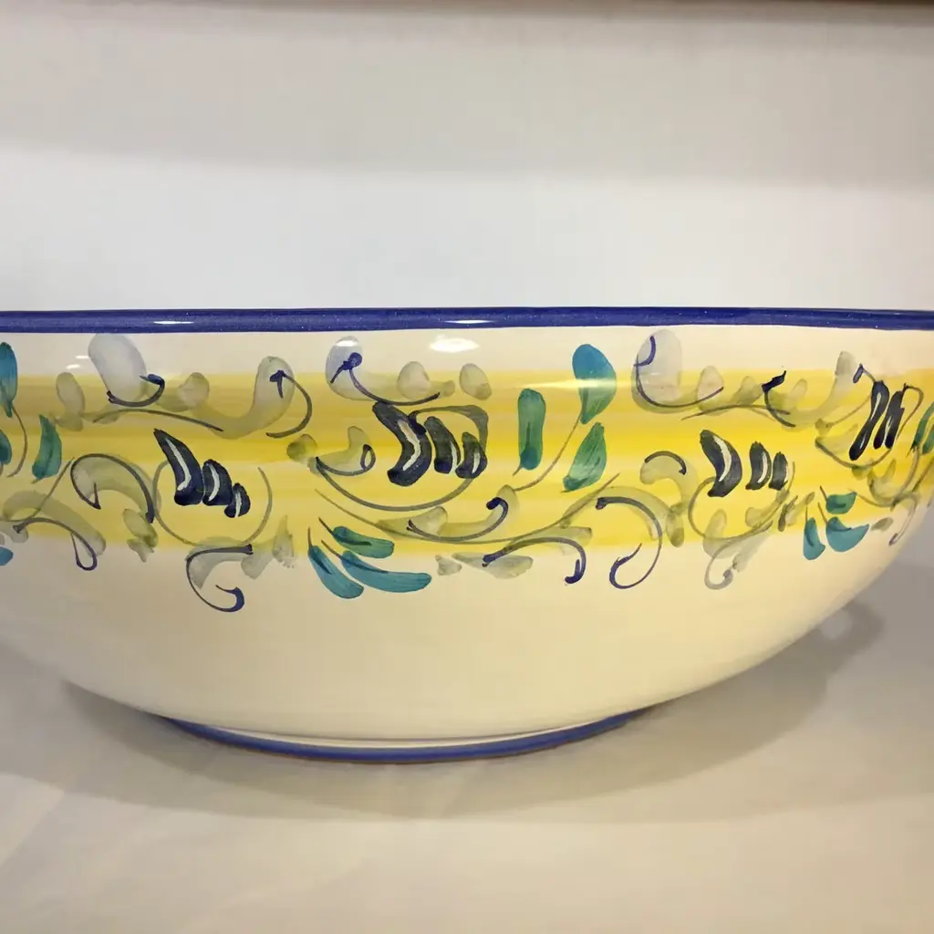 A striking statement will be made in any kitchen or dining room with the addition of this exquisite salad bowl. This piece was entirely crafted by the hands of skilled artisans and the exemplary decorations were applied by hand as well. This piece can be used to serve salad, pasta or rice and its decorations feature lemons arranged in clusters of three, enhanced by the stylized leaf and flower patterns surrounding them. This piece is a true work is exquisite traditional Tuscan craftsmanship.
