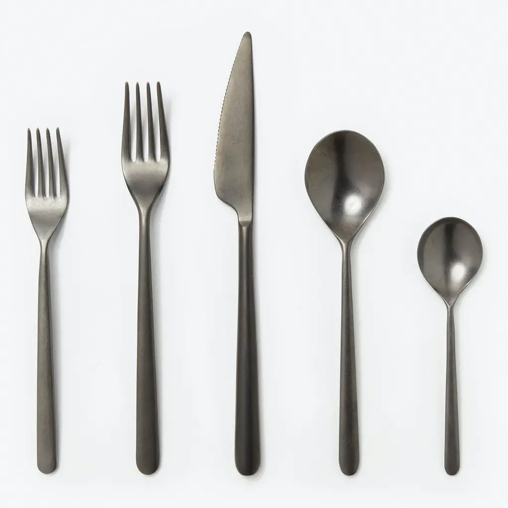Made in Italy, the Linea Flatware 5 Piece Set is coated with a beautiful brushed finish. Featuring crisp lines and a minimalist aesthetic, this collection brings a touch of Italian poetry to the table. Created in 1947, Mepra is a family-owned and operated company with a worldwide presence in flatware, cookware, and stainless-steel products. Today, Mepra flatware and kitchenware appear on the tables of the most prestigious hotels, award-winning restaurants, and artisanal-centered homes. Bring the magic of three generations worth of Italian traditions, designs, and lifestyles into your kitchen and dining room today. Stainless Steel plating features a special vintage process that gives it a rustic, warm, and elegant appearance while still being durable and inoxidizable coating. Winners of the 2020 Good Design Award, the Bronzo, Rainbow, Oro Nero, Champagne, Oro, and Ice Oro Collections are perfect for the most refined and stylish homes with their pure lines and harmoniously light forms. Champagne Ice, Ice Bronze, Ice, and Ice Oro Nero are coated with a PVD Titanium Coating that is tested and guaranteed for more than 3000 washes in a commercial dishwasher. The special Titanium Plating was originally developed by NASA, resulting in a durable and inoxidizable coating like non-other.