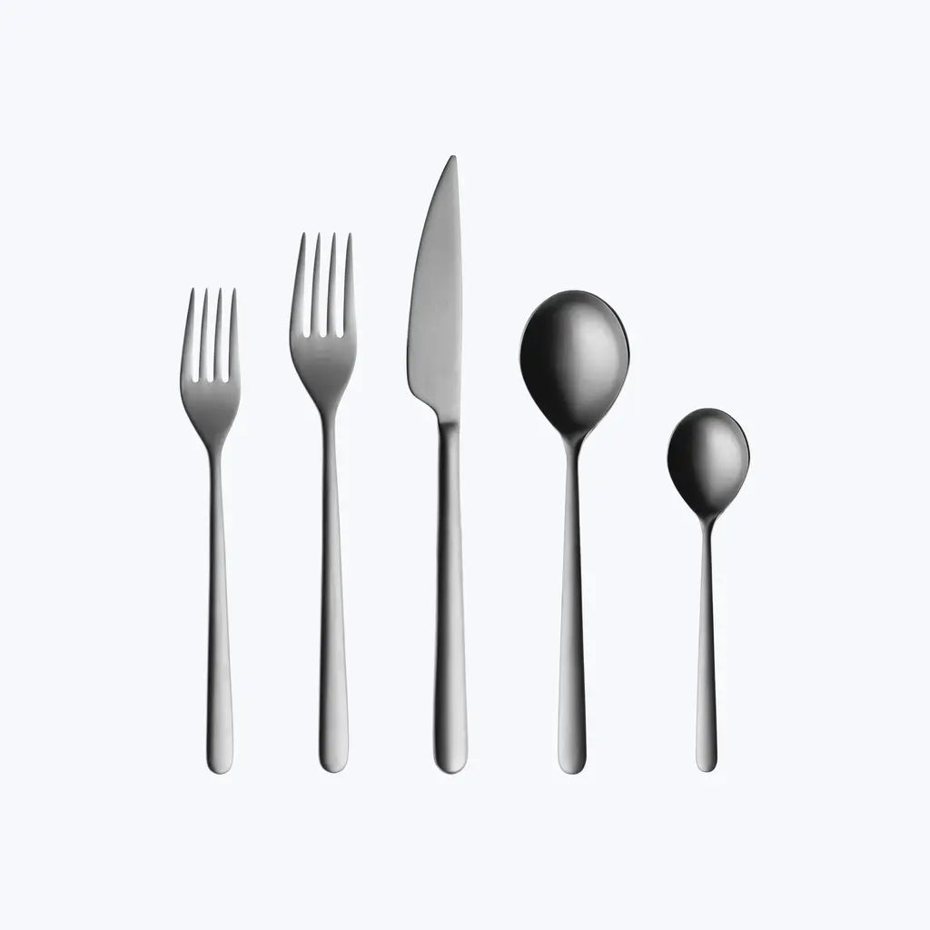 The Linea Flatware Set is made of the highest quality 18/10 steel, 4 mm thick, very durable, and incredibly ergonomic for dinner parties and everyday use. Knives have double serration for durable sharpness. Enhance your dining experience with this beautiful Italian flatware! Dishwasher and food safe. Created in 1947, Mepra is a family-owned and operated company with a worldwide presence in flatware, cookware, and stainless-steel products. Today, Mepra flatware and kitchenware appear on the tables of the most prestigious hotels, award-winning restaurants, and artisanal-centered homes. Bring the magic of three generations worth of Italian traditions, designs, and lifestyles into your kitchen and dining room today. Stainless Steel plating features a special vintage process that gives it a rustic, warm, and elegant appearance while still being durable and inoxidizable coating. Winners of the 2020 Good Design Award, the Bronzo, Rainbow, Oro Nero, Champagne, Oro, and Ice Oro Collections are perfect for the most refined and stylish homes with their pure lines and harmoniously light forms. Champagne Ice, Ice Bronze, Ice, and Ice Oro Nero are coated with a PVD Titanium Coating that is tested and guaranteed for more than 3000 washes in a commercial dishwasher. The special Titanium Plating was originally developed by NASA, resulting in a durable and inoxidizable coating like non-other. 20 Piece Cutlery Set includes (4) Dinner Forks, (4) Dinner Knives, (4) Salad Forks, (4) Soup Spoons, and (4) Coffee/Teaspoons