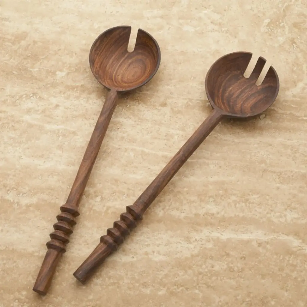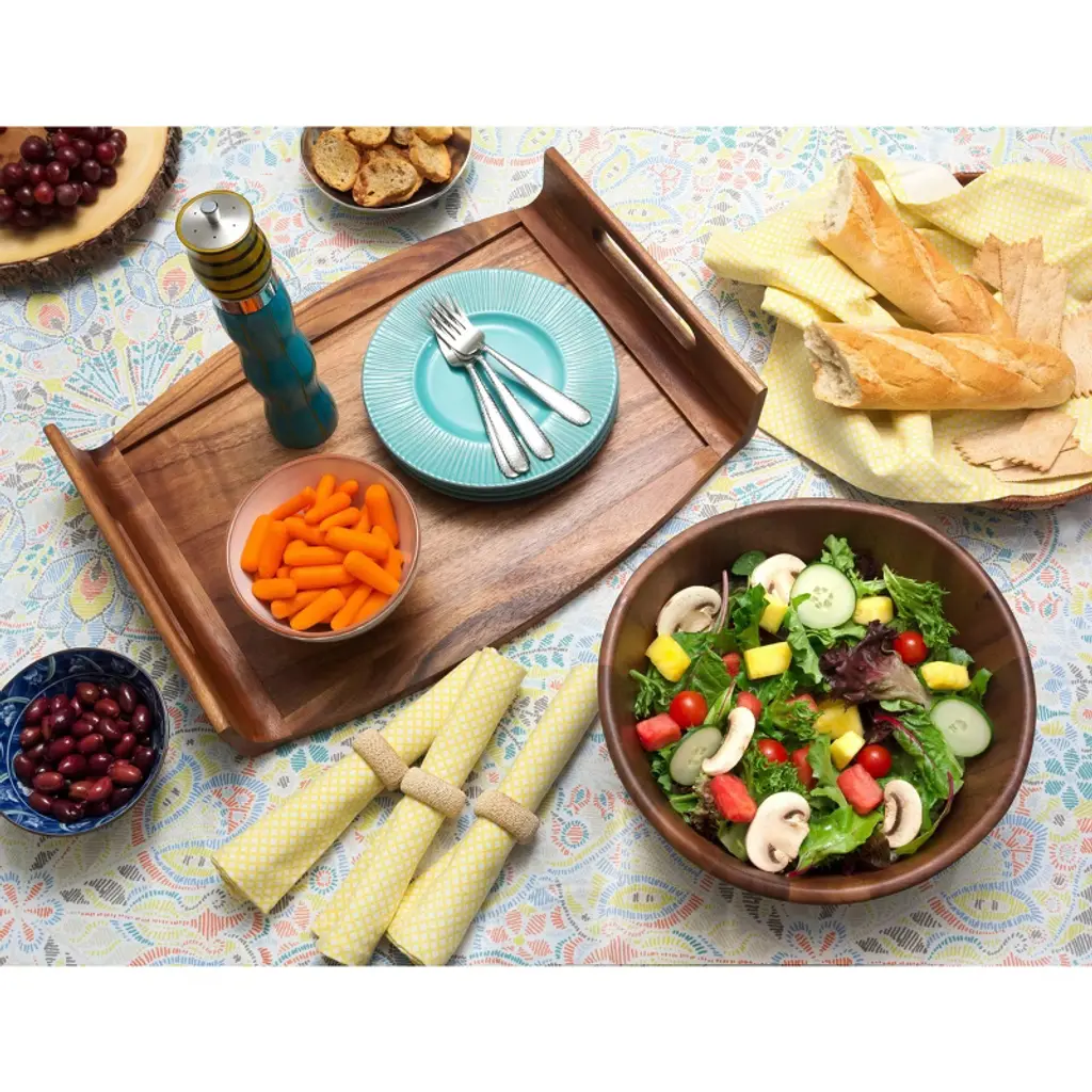 Perfect for serving everything from individual salads to movie-night popcorn, these beautiful wooden bowls are crafted from durable and attractive acacia wood. The high variation in the grain and knot pattern of acacia allows you to pair each piece with both light and dark colors inside any room. The rich texture of the acacia also pairs extremely well with various distressing practices that add warmth and character to the home. Fun and festive, you'll find our acacia wood serveware bowls, will be at the center of your parties for years to come. The 2-piece servers include a fork and paddle and are the perfect accessory for tossing and serving salad.