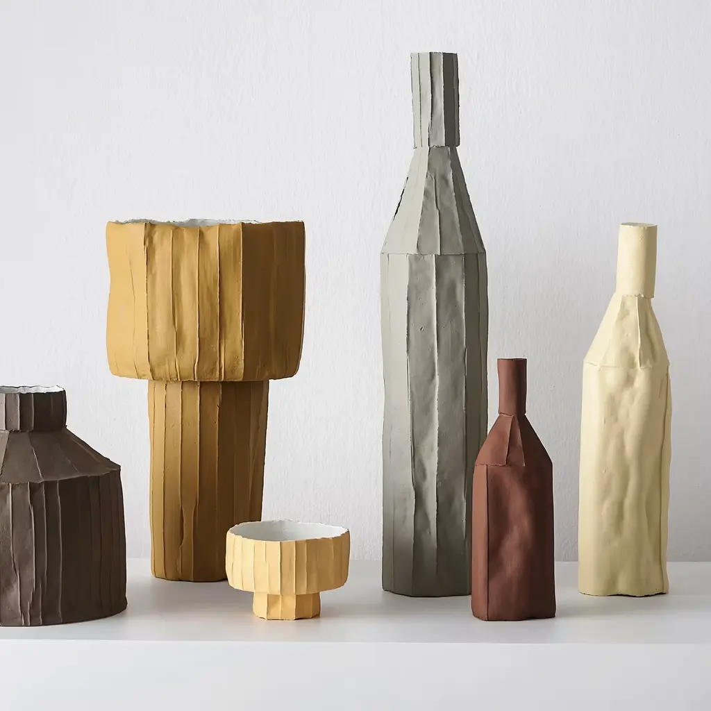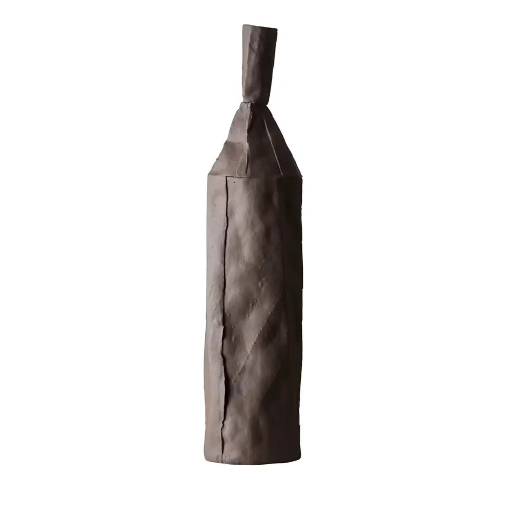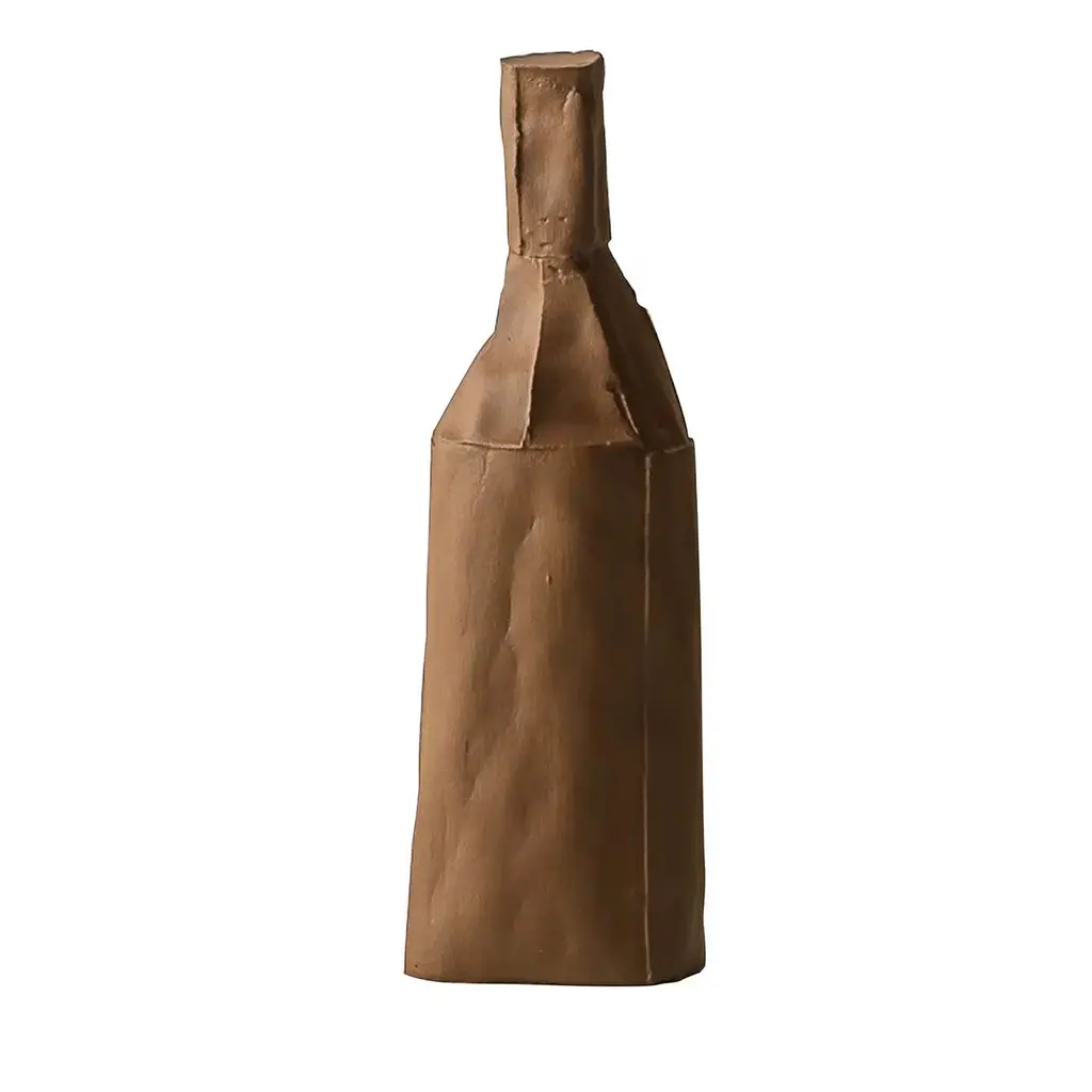 From the Cartocci Collection, the distinctive texture of this sculpture is achieved through ceramist Paola Paronetto’s trademark material, transforming familiar shapes into sculptural objects. Using paper clay, a mix of clay and natural fibers, this bottle-shaped sculpture boasts a lightness that is enhanced by its simple shape with a smooth, maroon finish. Displayed on a console or bookcase, alone or arranged with other pieces in contrasting color and finish, this piece will make a statement in any décor. Every one of Paola Paronetto’s creations is unique. Slight variations in shape, colour and size are to be considered a guarantee of authenticity and value. They are finished with non-toxic satin-finish enamels. Although very rarely, it is possible for them to leak after long periods of exposure to water. It is therefore advisable to test their water resistance before using them on delicate surfaces. They should not be used as dining utensils. The white pieces can be washed with water or sanitizing products, whereas the coloured pieces must be treated more gently and cleaned with a feather duster or a soft cloth, dry or moistened very slightly with water.