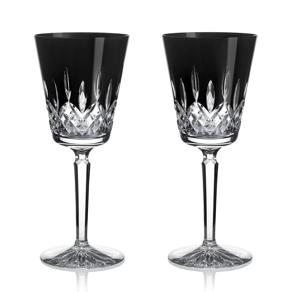 Waterford's best-selling Lismore pattern takes a dramatic turn with the Lismore Black collection. Rich opaque black color adds a striking contrast to the sparkling clear crystal, emphasizing the deep cuts of the beloved Lismore pattern. The bold Lismore Black Goblet Set of two is ideal for accentuating the color and aroma of red wine. Features