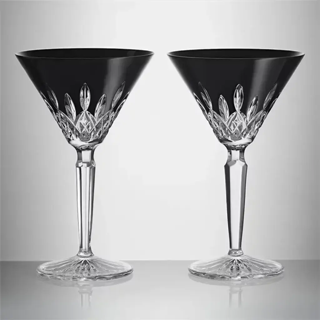 Waterford's best-selling Lismore pattern takes a dramatic turn with the Lismore Black collection. Rich opaque black color adds a striking contrast to the sparkling clear crystal, emphasizing the deep cuts of the beloved Lismore pattern. The bold Lismore Black Goblet Set of two is ideal for accentuating the color and aroma of red wine. Features