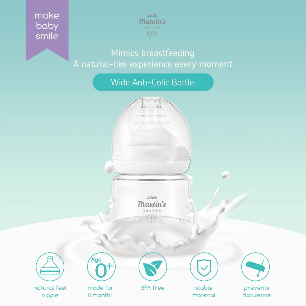 Storing breastmilk is easy with our plastic feeding bottles, compatible with Little Martin's Pump. Our wide-neck design prevents nipple confusion. Its natural-feel nipple makes switching between breast and bottle smooth. Ideal for 0+ months babies. Quick cleaning: boil or use hot, soapy water.