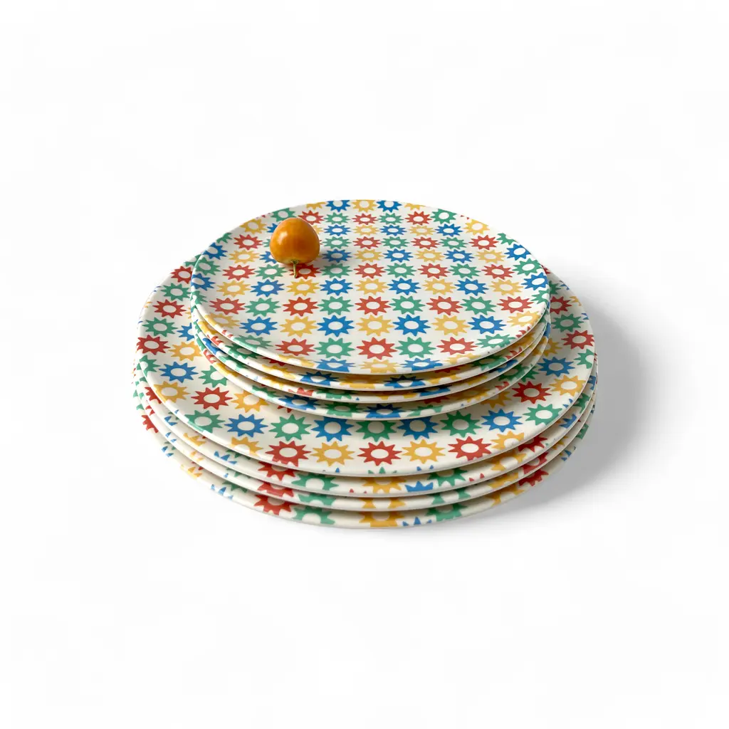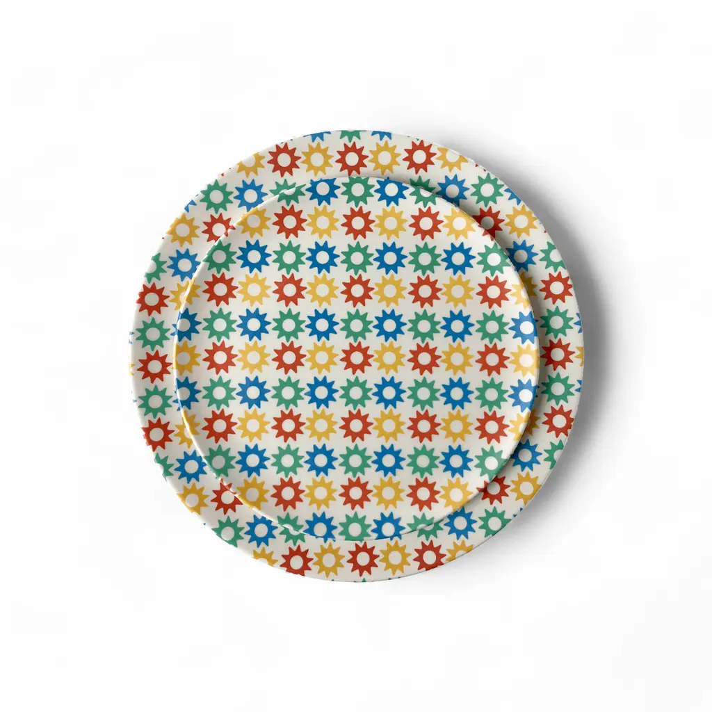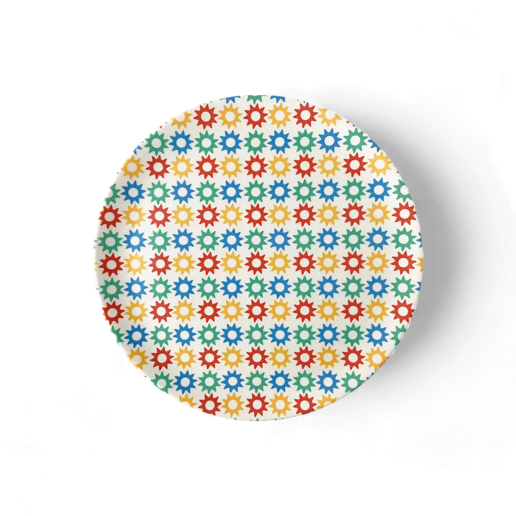 Make any meal shine with the Little Stars Side Plate from Xenia Taler. Vibrant and fun, this design uses bright colors and symmetrical stars to take your outdoor gatherings to the next level. Not to mention that the plate is eco-friendly, practical, and can be re-used – again and again. Crafted from a bamboo composite material, the plate is produced in a process that requires significantly less water and energy compared to ceramic plates. The material also offers a range of advantages; it’s lightweight and easy to pack in a picnic bag; resists scratches and doesn’t shatter; is dishwasher-safe, for easy cleaning; and is completely free of any PVC, BPA and all phthalates. The Little Stars Side Plate suits smaller meals, snacks and desserts, with the design also available in a larger version. Please keep in mind that the Xenia Taler collection of bamboo tableware is made with a resin binder and is NOT microwave-safe.