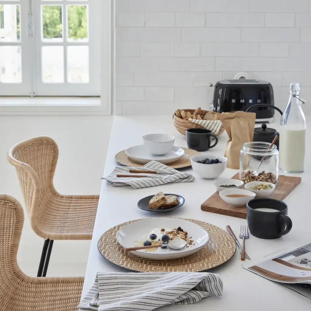 Organic silhouettes in glossy white and matte black Nested in elegance, Livia presents itself as a modern approach to tableware. Each piece features an organic look and feel over two contrasting glazes - a lustrous white and a matte-speckled black glaze. Handcrafted and designed to inspire our senses, this complete collection has all the elements to enhance any gathering. Named after a small fishing village famous for its colorfully painted wooden houses, Costa Nova combines ancient European craft traditions, elegant design and quality to create fine stoneware pieces. Using the best natural resources in Portugal, Costa Nova pieces are known for their color and exceptional durability.
