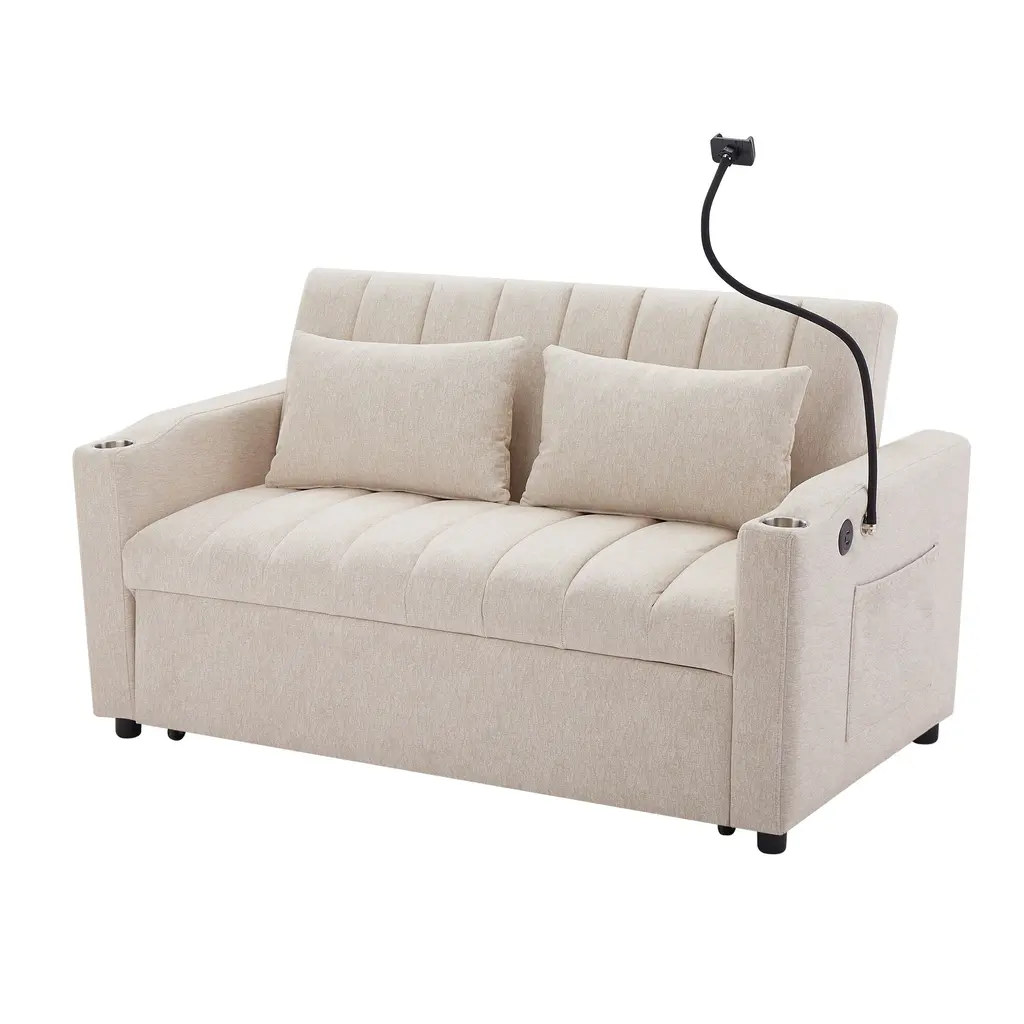 Living Room Accent Sofa Loveseat Fabric Sofa With Three Usb Ports And Two Cup Holder Sofa Bed Sleep Sofa,beige - Beige