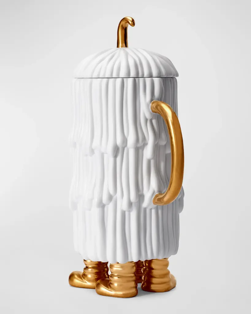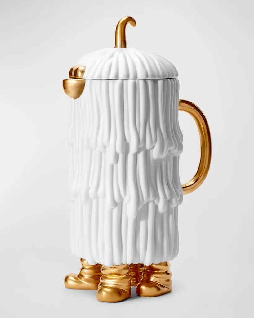 Porcelain tea pot with bronze-tone trim "Monster" design, complete with feet Approx. 7"L x 4.5"W x 12"T Made in Portugal About L'Objet: Elad Yifrach, a former interior designer, introduced L'Objet in 2004. With a collection that blends ancient techniques with a modern sensibility, L'Objet features beautiful dinnerware, table linens, serveware, and accessories that are carefully handmade by European and Asian master craftsmen. The L'Objet collection also includes accents for the home, including frames, candles, and desk accessories, many of which are crafted from 24-karat gold, platinum, and other fine materials.