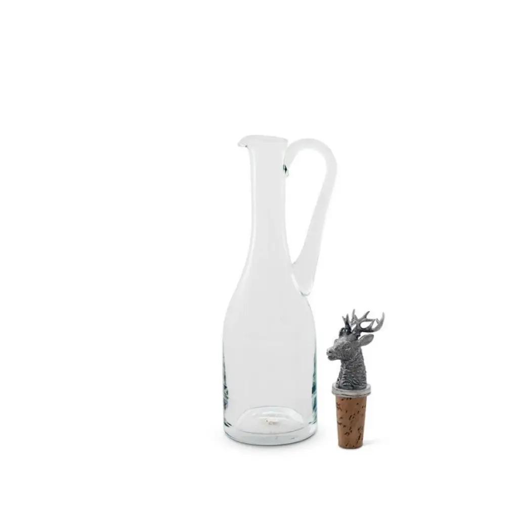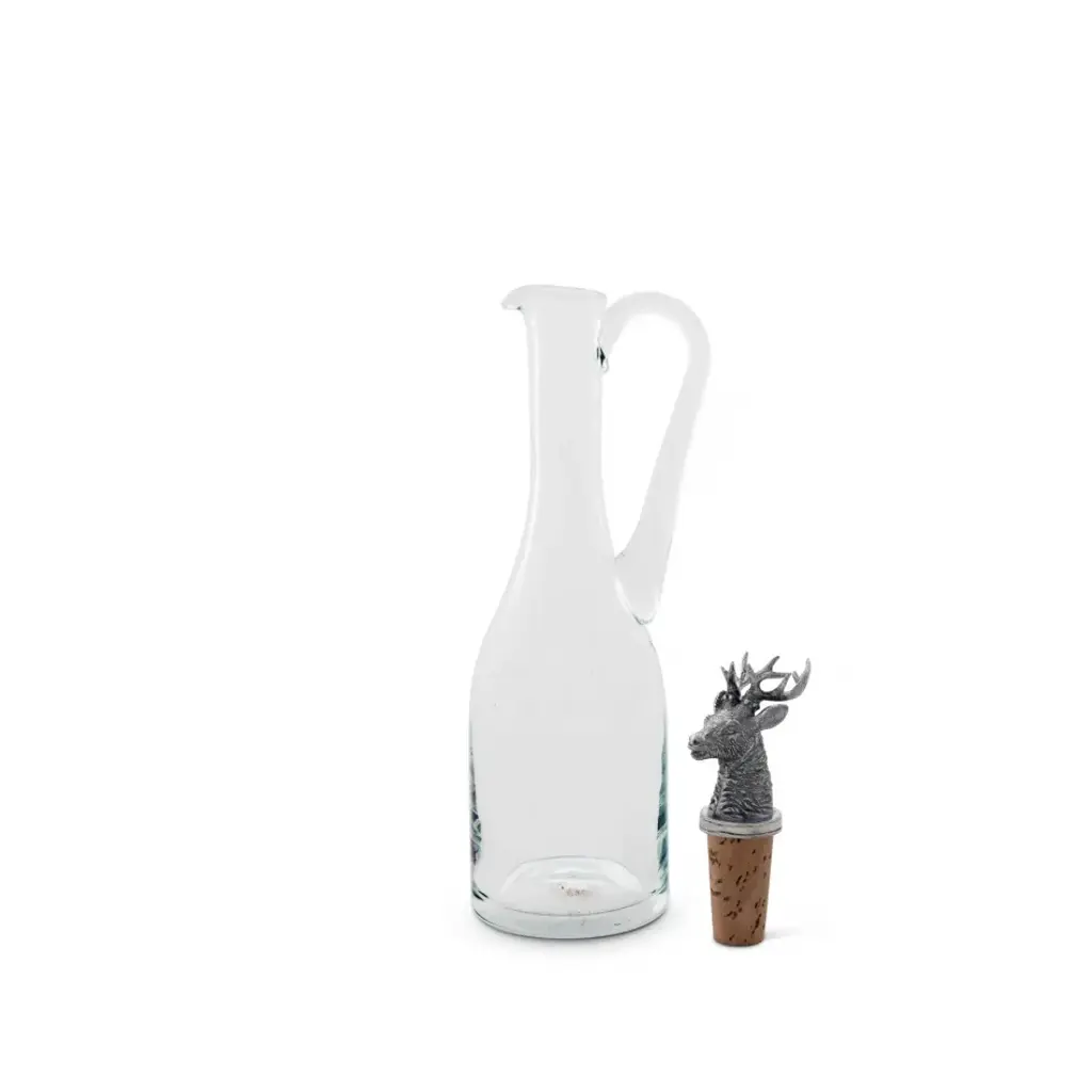 Vagabond House's Elk Cruet features a natural cork stopper topped with a pewter elk finial. Add arts-n-crafts style to a table or counter top and store and serve oil, vinegar, honey, syrup, etc. Hand-blown glass and luxurious pewter, thoughtfully designed and hand-crafted to perfection. With its thin neck and the wider bottom, this cruet combines functionality and timeless design. Vagabond House is a family-owned American company specializing in fine pewter tableware, servingware and giftware. Largely inspired by nature, their exclusive products are designed to be unique, functional heirlooms for those who seek to express tradition and style in both family and formal entertaining.