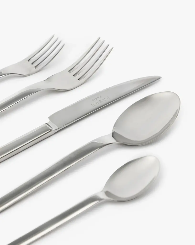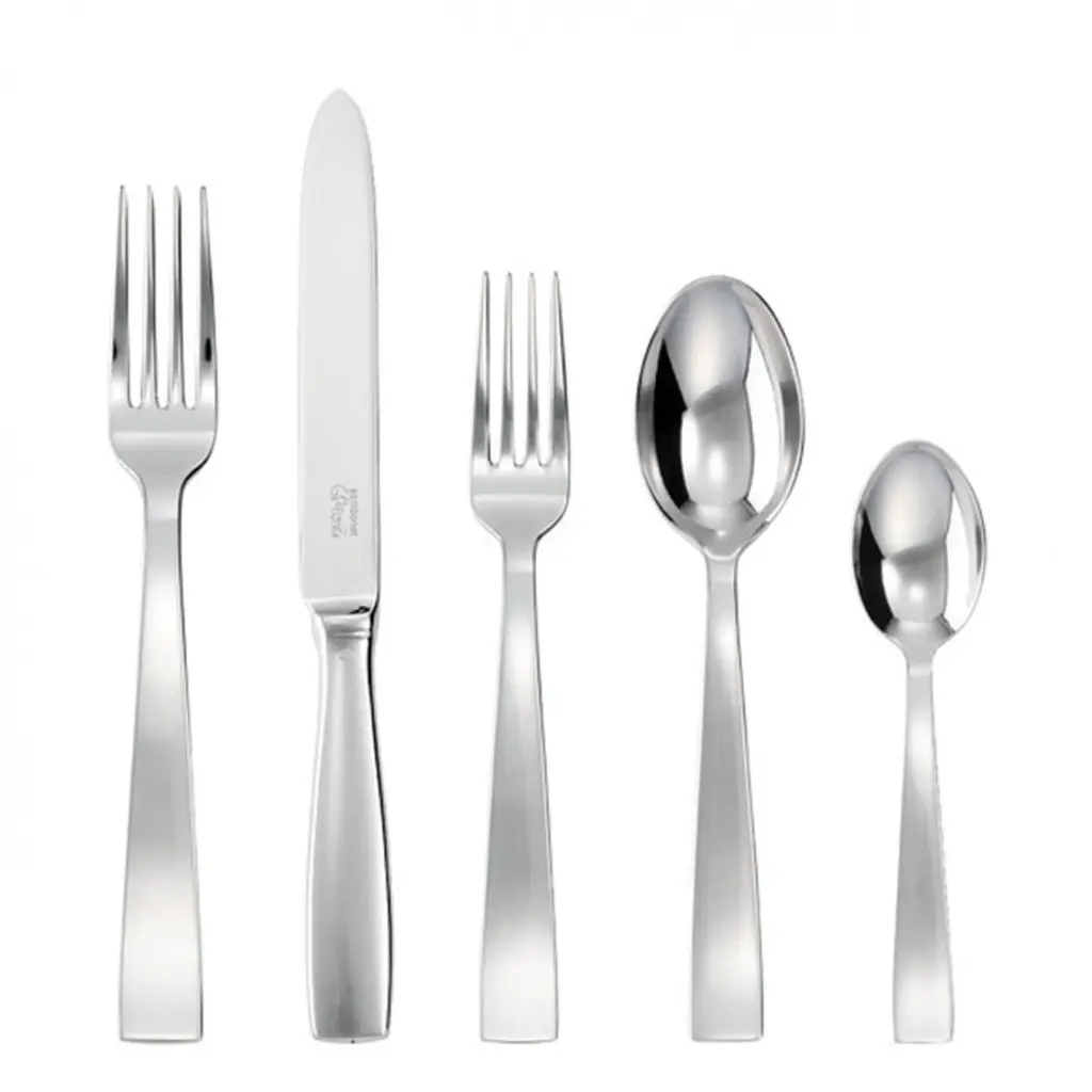 The Loft Flatware by Sabre brings sleek sophistication to place settings. Its stainless steel material complements your everyday tabletop. This set includes a soup spoon, dinner fork, dinner knife, teaspoon, and salad fork.
