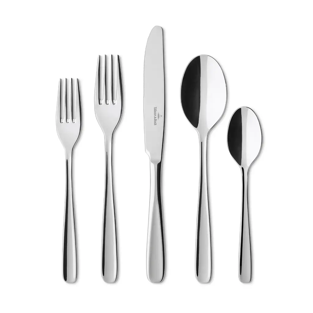 Loft Stainlessloft Shiny Stainless Steel 5-Pc Setting (Dinner Knife, Dinner Fork, Soup Spoon, Salad Fork, Teaspoon)
