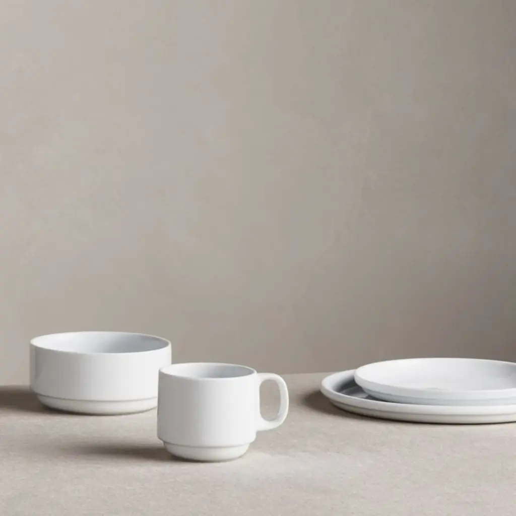 Designed to stack, Logan dinnerware makes the most of kitchen storage with a modern, classic look that segues from casual to elegant. Martin Hunt masterfully mixes function and form in clean, streamlined shapes of durable porcelain.