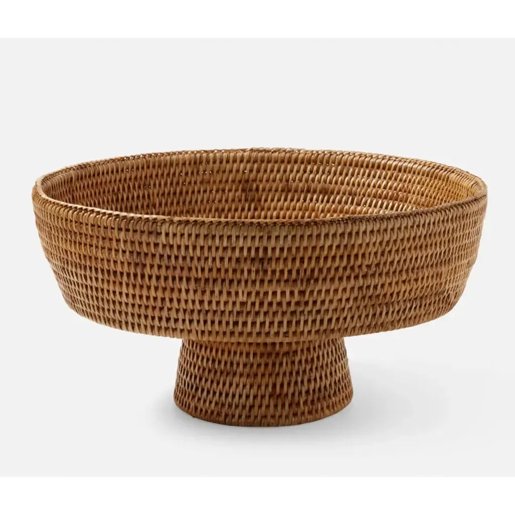 The classic footed pedestal bowl lightens up with our Londyn, a serving piece entirely crafted from woven rattan—and made for fruits, breads, and pastries. Now available in Whitewash! Blue Pheasant's products are handmade with care by artisans using natural materials. They are not mass produced, so variation between products should be expected, and this is why we love them! It is these irregularities that makes Blue Pheasant what it is—a special brand whose collections are distinctly handmade, full of charm and originality you’ll never find in machine-made products.