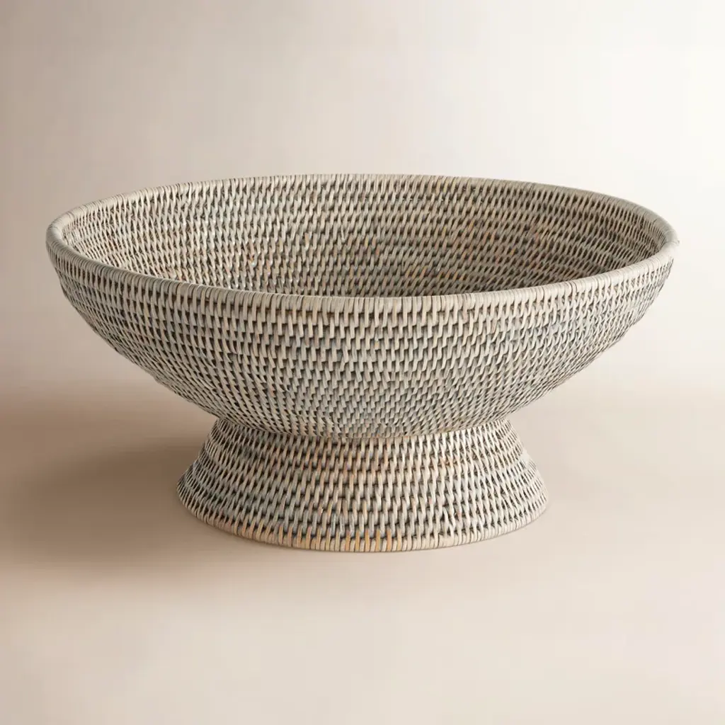 Londyn Whitewashed, Footed Serving Bowl, Rattan, X-Large