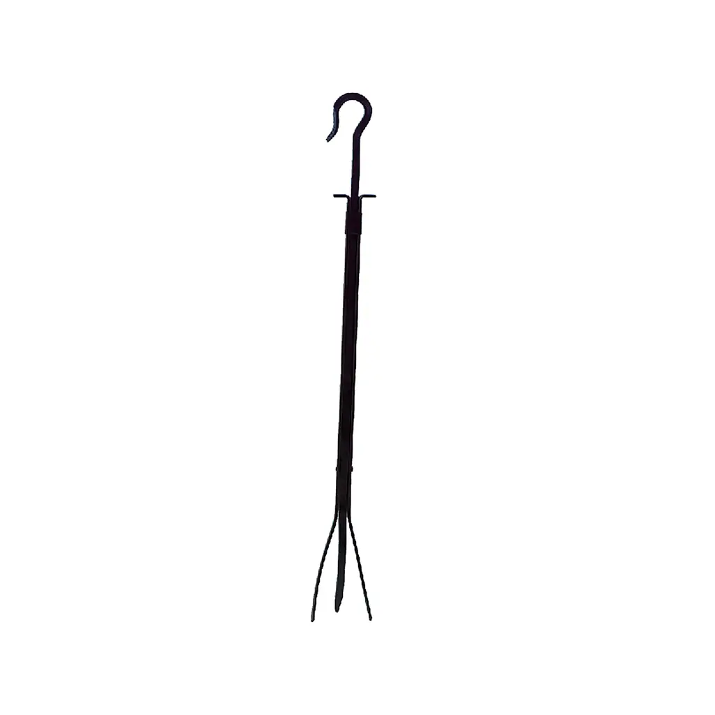 Tend to your roaring fire from a safe distance with our Long Wrought Iron Fireplace Poker Fork. Multifunctional tool is essential for safely stoking the fire and maneuvering smoldering logs. Generous length helps keep hands clean and away from flames and coals. Wrought iron construction ensures many years of use. Handle has built-in hook for easy storage near your fireplace. Also works great with outdoor fire pits. Don't worry about moving your indoor toolset outside, just keep this poker near the fire pit so you are always ready.