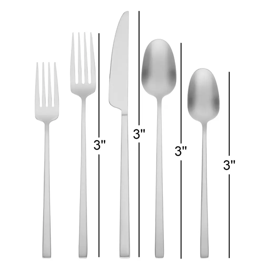 Elevate your dining experience with this sleek and elegant 20-piece flatware set. Perfect for serving up to four guests, the set includes four teaspoons, four tablespoons, four dinner knives, four dinner forks, and four salad forks. Each piece is crafted from durable stainless steel and available in a finish of your choice to complement your table setting and enhance your dining décor. Dishwasher safe.