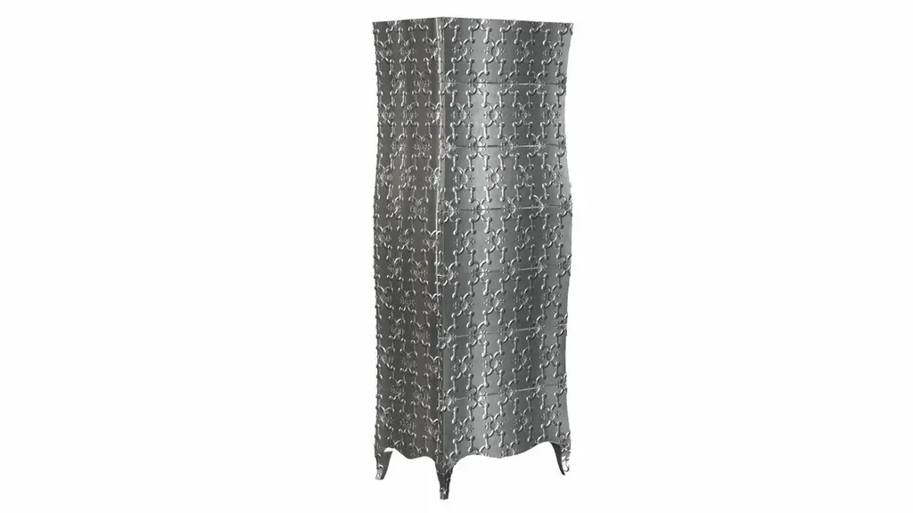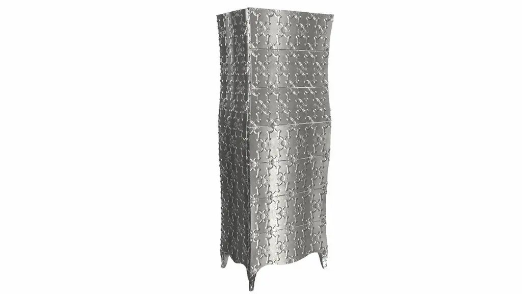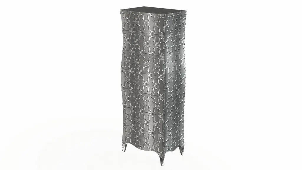 “Semainier” refers to a French piece of furniture with seven drawers (Fr. Semaine = week). It is part of the Louise Collection designed by renowned designer Paul Mathieu. A remarkable piece in which each of the exterior faces is entirely sculpted out of a solid piece of wood by hand, then covered with metal sheeting. The available options for metal cladding are brass, white bronze, antiqued bronze, silver and copper. Both silver and copper will tarnish over time. Regular non-abrasive household metal polishes can be used to restore the original finish. Crafted with utmost care and attention to detail, these Louise Semainier are made to order and are available in twelve metal clad finishes, ensuring that you can choose the perfect one to match your individual style and taste. The use of high-quality materials and expert craftsmanship ensure that each Art Deco Louise Semainier is not only beautiful but also a true piece of art.The curved legs and side arms of this Art Deco Louise Semainier are hand carved from solid pieces of teak. Pattern makers trace and cut complex forms that will cover the chair in a skin of copper, white bronze, brass or antiqued white bronze The metal finishes will tarnish over time. Regular non-abrasive household metal polishes can be used to restore the original luster.Overall, if you're looking for a piece of furniture that combines luxury, comfort, and style, then the Art Deco Louise Semainier is an excellent choice. With its distinctive curved profile and multiple finish options, this Chair set is sure to elevate the look of any room it is placed in, and be a beloved addition to your home for years to come.The images shown in this listing are shot in different lighting conditions and/or are 3D illustrations. We encourage our customers to please request a sample or a full sample set of 12 finishes so that they can experience the finish first hand. Louise Semainier Corner Cupboards Smooth White Bronze by Paul Mathieu for Stephanie OdegardSize- 24"x 16"x 66"HMaterials - Antique White Bronze, Metal sheet, Teak, Wood, MetalTechniques: Hand-Crafted, Hand-Carved, Metal Work, Wood Work, Metal Wrapping, PolishedPlease note that moisture in air, sudden change in temperature and natural movement of wood over time causes the metal to wrinkle or bubble up. We use well seasoned, reclaimed teak and high quality marine grade MDF (wherever technically possible) to avoid and delay the mentioned changes. However a perfect stability of metal cannot be guaranteed. Please note that our smooth finish metal clad pieces will have some unavoidable tool marks. This is proof that everything is done by hand. The smooth finish will not come out like a machine made perfect surface and the master artisan will do their best to make it look as good/clean/stable/perfect as he possibly can.The antique white bronze finish is hand done by using an acidic chemical over the white bronze finish to recreate a natural patination. Like with the natural patination of silver, copper, or brass, the final result and color uniformity of the patina cannot be guaranteed. The goal of this finish is to achieve rainbow-like shades with dull, shiny, cloudy, and streaky patches to give an illusion of antiquing. Please note:None of our metal clad pieces are treated with a protective “finish” thus enabling the items to age naturally over time. We will of course polish them well before we pack them. a) Copper oxidizes faster than the other metals. In six to twelve months it will most likely lose its shine and will gradually turn to different shades of brown and/or green/blue. This aging process and its effect is referred to as verdigris. After a year the piece should not change much more. Copper does not rust, but does require periodic cleaning in order to retain its original shine if that the preferred option. ('BRASSO' or any known copper polish can be used to polish copper).b) Brass retains its shine for far longer than others, but will tarnish if not cleaned on occasion. ('BRASSO' is made to polish brass).c) White bronze, has the least tendency to show age or tarnish. If kept in a controlled climate, this metal will hold its shine for years. It can be cleaned with a cleanser and polished with a cloth. d) The antiqued white bronze finish will react with the natural elements the fastest in the beginning but it too will stop reacting and will settle down in a stable state like copper after 6-12 months. Since it is already antiqued and looked like it is tarnished, as described in an earlier message, this fast reaction will not change the over all look. In that way this surface is most forgiving. The images shown in this listing are shot in different lighting conditions and/or are 3D illustrations. We encourage our customers to please request a sample or a full sample set of 12 finishes so that they can experience the finish first hand.