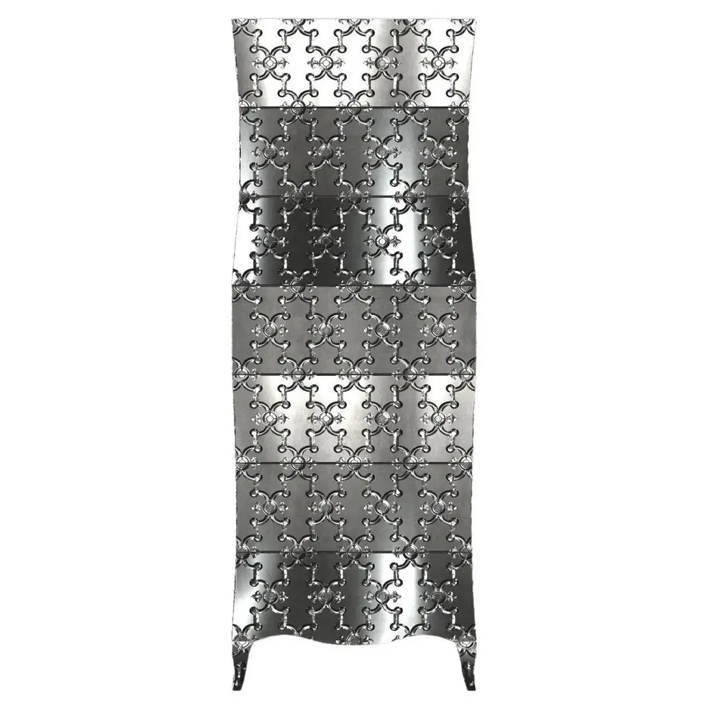 “Semainier” refers to a French piece of furniture with seven drawers (Fr. Semaine = week). It is part of the Louise Collection designed by renowned designer Paul Mathieu. A remarkable piece in which each of the exterior faces is entirely sculpted out of a solid piece of wood by hand, then covered with metal sheeting. The available options for metal cladding are brass, white bronze, antiqued bronze, silver and copper. Both silver and copper will tarnish over time. Regular non-abrasive household metal polishes can be used to restore the original finish. Crafted with utmost care and attention to detail, these Louise Semainier are made to order and are available in twelve metal clad finishes, ensuring that you can choose the perfect one to match your individual style and taste. The use of high-quality materials and expert craftsmanship ensure that each Art Deco Louise Semainier is not only beautiful but also a true piece of art.The curved legs and side arms of this Art Deco Louise Semainier are hand carved from solid pieces of teak. Pattern makers trace and cut complex forms that will cover the chair in a skin of copper, white bronze, brass or antiqued white bronze The metal finishes will tarnish over time. Regular non-abrasive household metal polishes can be used to restore the original luster.Overall, if you're looking for a piece of furniture that combines luxury, comfort, and style, then the Art Deco Louise Semainier is an excellent choice. With its distinctive curved profile and multiple finish options, this Chair set is sure to elevate the look of any room it is placed in, and be a beloved addition to your home for years to come.The images shown in this listing are shot in different lighting conditions and/or are 3D illustrations. We encourage our customers to please request a sample or a full sample set of 12 finishes so that they can experience the finish first hand. Louise Semainier Cupboards in Fine Hammered White Bronze by Paul for S OdegardSize- 24"x 16"x 66"HMaterials - White Bronze, Metal sheet, Teak, Wood, MetalTechniques: Hand-Crafted, Hand-Carved, Metal Work, Wood Work, Metal Wrapping, PolishedPlease note that moisture in air, sudden change in temperature and natural movement of wood over time causes the metal to wrinkle or bubble up. We use well seasoned, reclaimed teak and high quality marine grade MDF (wherever technically possible) to avoid and delay the mentioned changes. However a perfect stability of metal cannot be guaranteed. Please note that our smooth finish metal clad pieces will have some unavoidable tool marks. This is proof that everything is done by hand. The smooth finish will not come out like a machine made perfect surface and the master artisan will do their best to make it look as good/clean/stable/perfect as he possibly can.The antique white bronze finish is hand done by using an acidic chemical over the white bronze finish to recreate a natural patination. Like with the natural patination of silver, copper, or brass, the final result and color uniformity of the patina cannot be guaranteed. The goal of this finish is to achieve rainbow-like shades with dull, shiny, cloudy, and streaky patches to give an illusion of antiquing. Please note:None of our metal clad pieces are treated with a protective “finish” thus enabling the items to age naturally over time. We will of course polish them well before we pack them. a) Copper oxidizes faster than the other metals. In six to twelve months it will most likely lose its shine and will gradually turn to different shades of brown and/or green/blue. This aging process and its effect is referred to as verdigris. After a year the piece should not change much more. Copper does not rust, but does require periodic cleaning in order to retain its original shine if that the preferred option. ('BRASSO' or any known copper polish can be used to polish copper).b) Brass retains its shine for far longer than others, but will tarnish if not cleaned on occasion. ('BRASSO' is made to polish brass).c) White bronze, has the least tendency to show age or tarnish. If kept in a controlled climate, this metal will hold its shine for years. It can be cleaned with a cleanser and polished with a cloth. d) The antiqued white bronze finish will react with the natural elements the fastest in the beginning but it too will stop reacting and will settle down in a stable state like copper after 6-12 months. Since it is already antiqued and looked like it is tarnished, as described in an earlier message, this fast reaction will not change the over all look. In that way this surface is most forgiving. The images shown in this listing are shot in different lighting conditions and/or are 3D illustrations. We encourage our customers to please request a sample or a full sample set of 12 finishes so that they can experience the finish first hand.