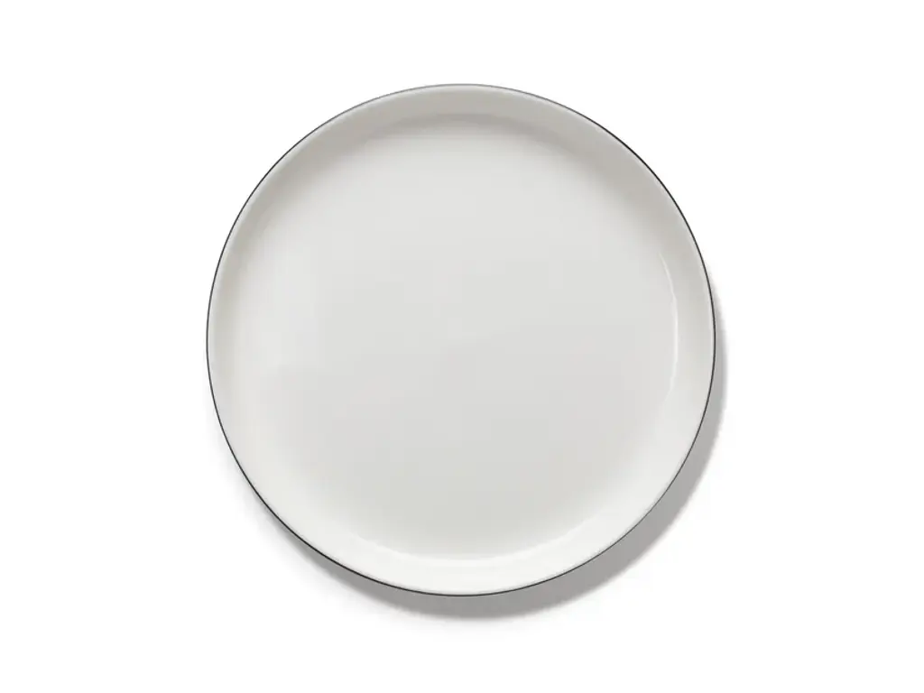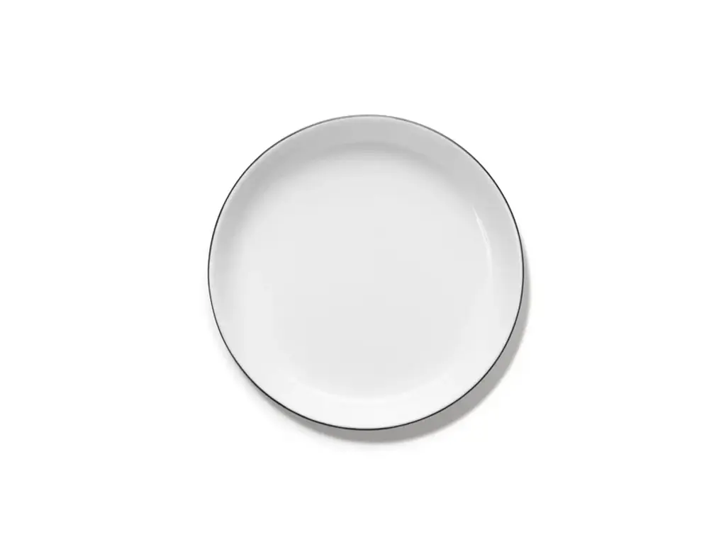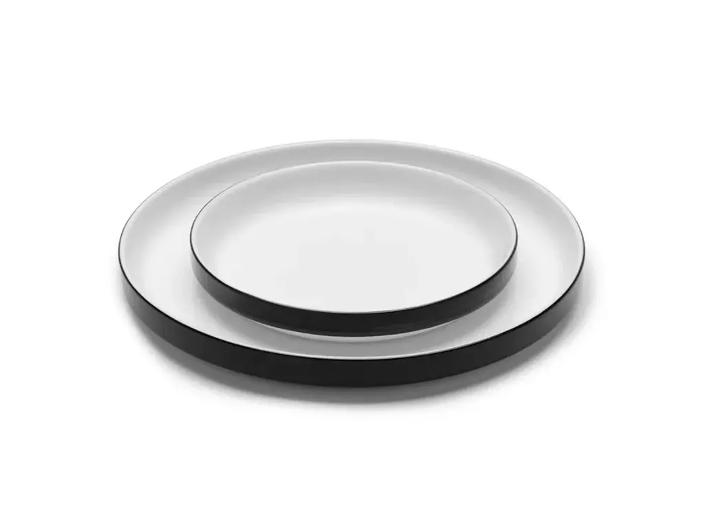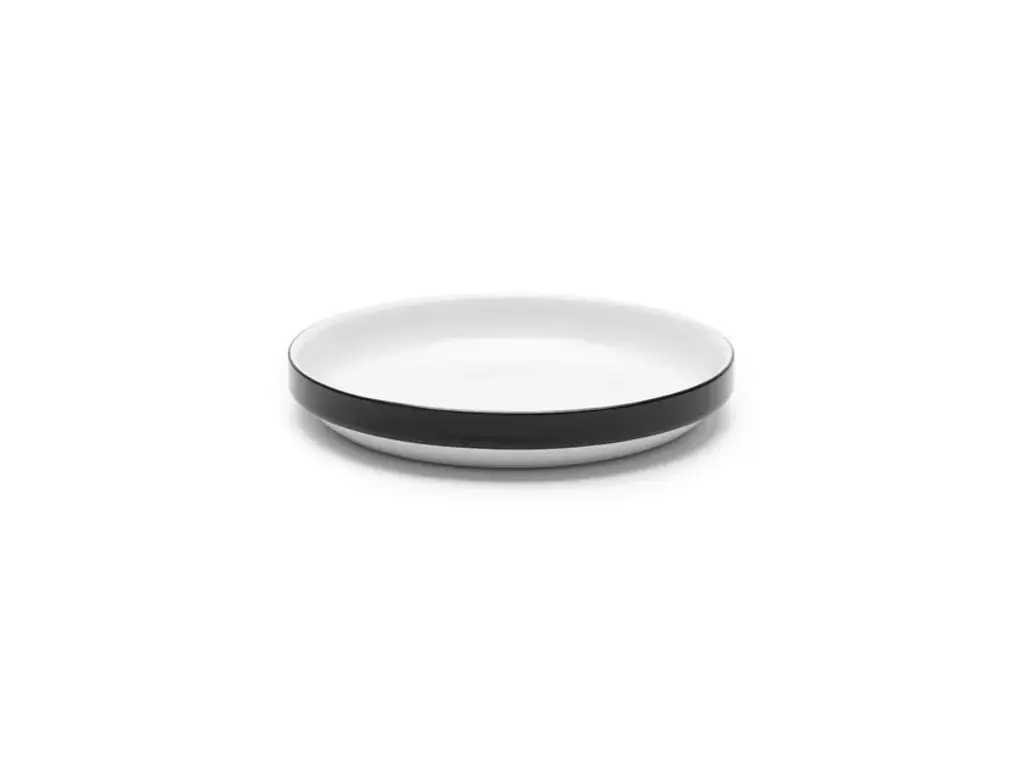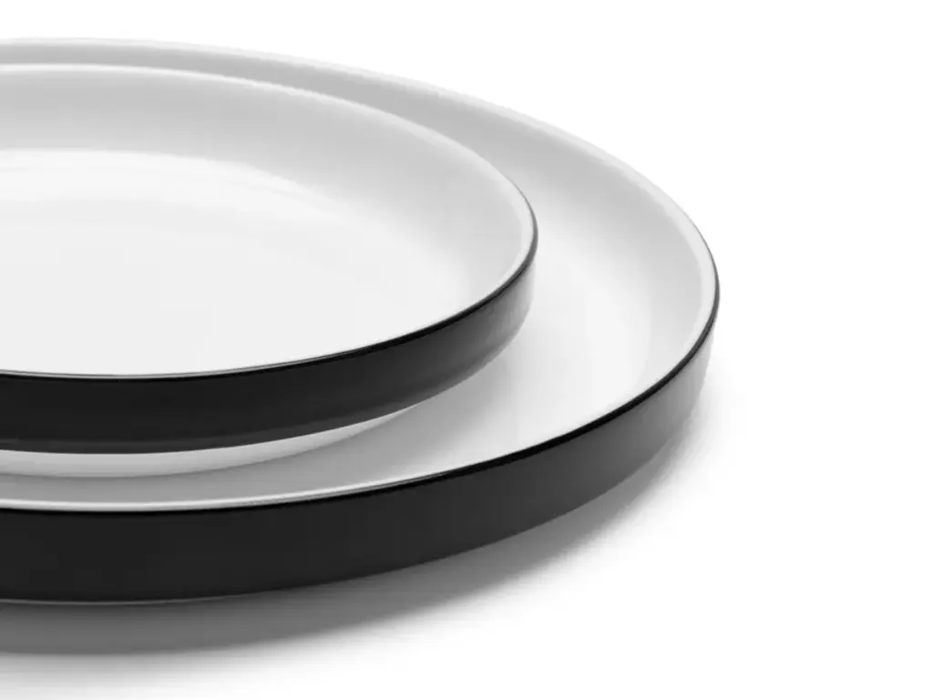 Low plate Passe-Partout is a low plate made of porcelain.These low plates have a pared-down, neutral look and feel. The off-white glaze on the inside and the matte finish on the outside give it a unique contrast. The aesthetic appearance of our product is enriched by its matte finish on the outside. However, the matte, more porous, surface contributes to susceptibility to stains, so we recommend washing the product immediately after use. This prevents stains from penetrating the material.The pared-down, neutral design of these low plates means they can be mixed and matched in countless ways. The off-white glaze on the inside and the matte finish on the outside create a unique contrast. The aesthetic appearance of our product is enriched by its matte finish on the outside. However, the matte, more porous, surface contributes to susceptibility to stains, so we recommend washing the product immediately after use. This prevents stains from penetrating the material.With the porcelain tableware, countless visual effects can be created by stacking or by playing with the contrasting white and black exterior colours. The glasses are vaguely reminiscent of medieval chalices, and the carafes of different sizes serve all purposes. The cutlery and wooden accessories are also no-nonsense, a tad nostalgic, while at the same time very contemporary.