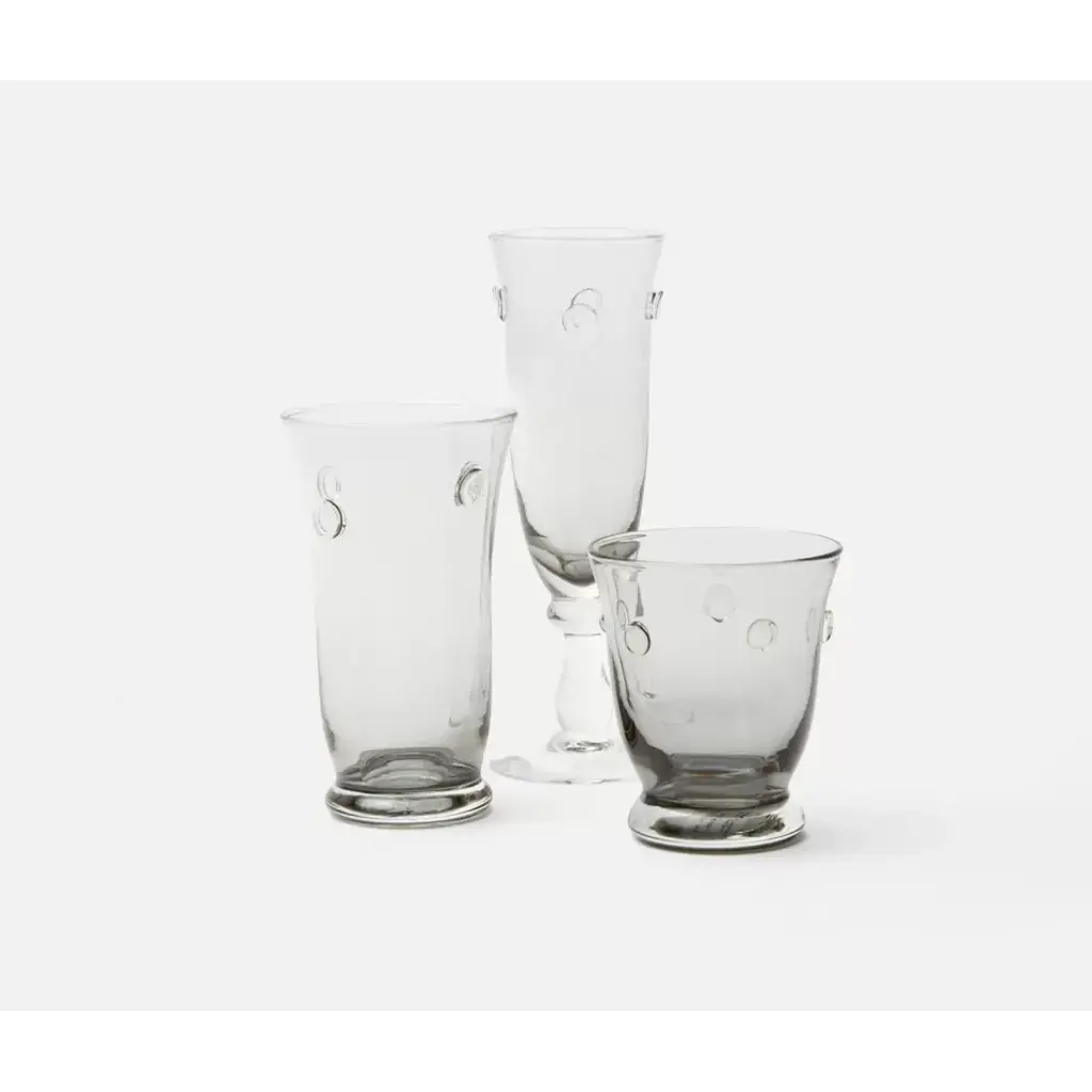 Lucia Pale Gray Champagne Flute Glass, Hand Blown, Pack Of 6