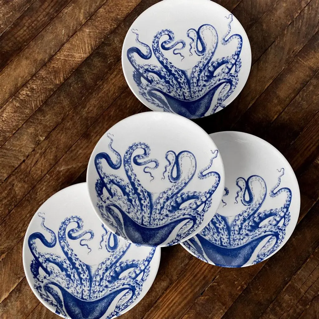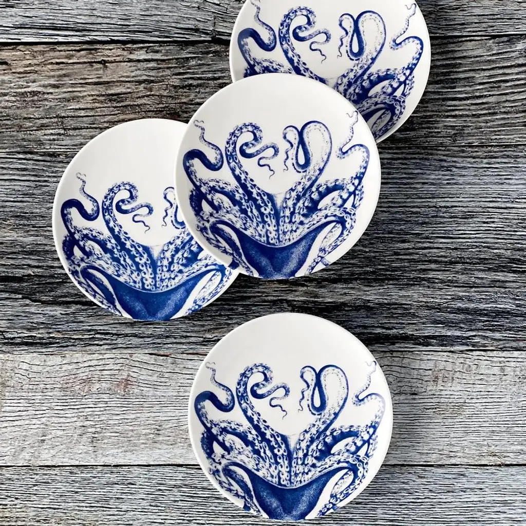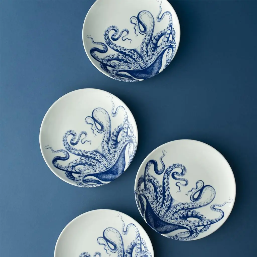 Lucy Coastal Beach Blue Porcelain Canape Plate - Set Of 4