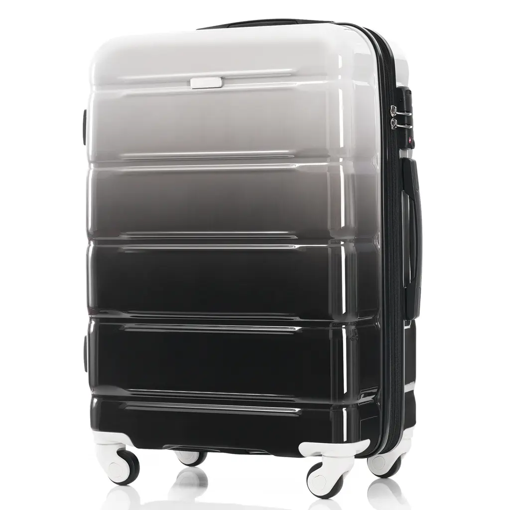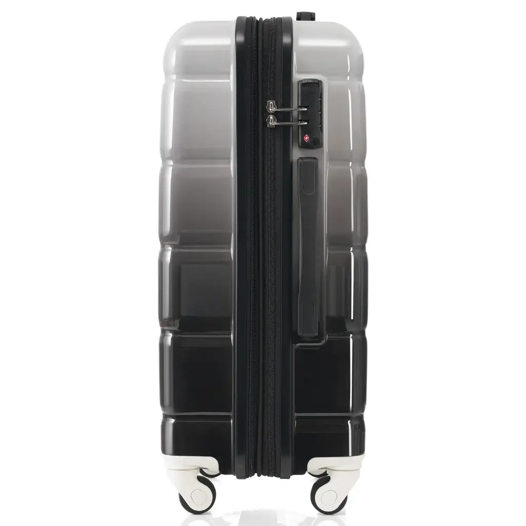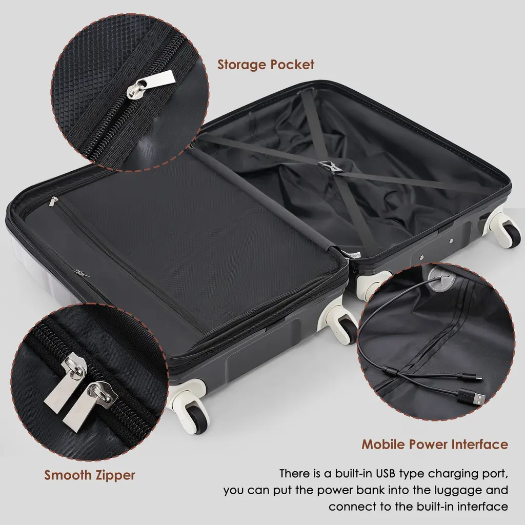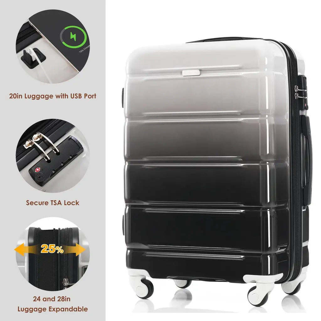 Luggage Set Of 3, Abs+pc Hard Shell Carry-On Suitcases With Cup Holder And Usb Port & Spinner Wheels, For Men Women Travel - Black+gery