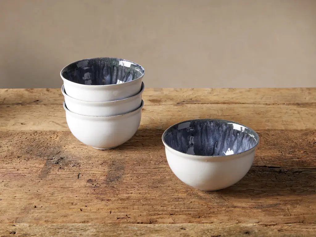 Featuring a unique, two-tone design, our Luna Cereal Bowls are handcrafted in Portugal. Luna’s rich, deep blue interior glaze contrasts beautifully with the soft white finish underneath each piece. Set of 4. Stoneware. Due to Luna’s handcrafted nature and reactive glaze, finishes will vary slightly from piece to piece. No two are exactly alike.
