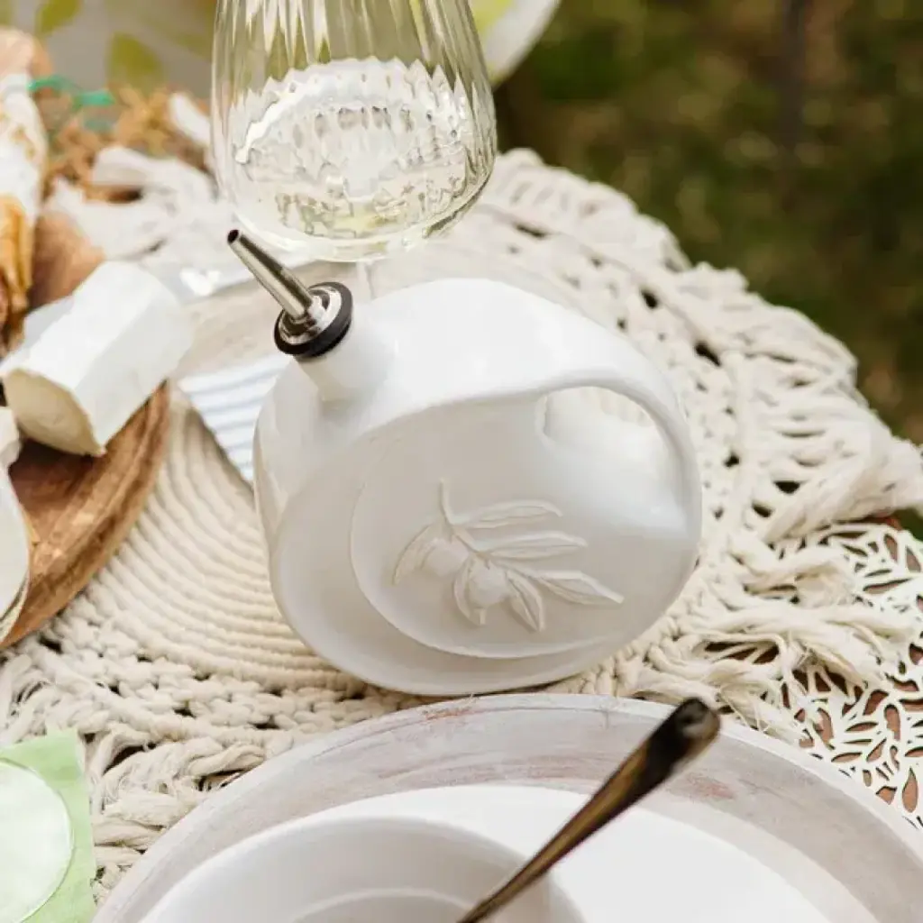 An artful balance of simple yet striking, the Luna Olive Oil Bottle takes its inspiration from the waxing and waning curves of the moon. Modern and inviting, this collection is a versatile, irresistibly Italian base for both an everyday and formal table. Since 1983, Vietri has specialized exclusively in Italian handcrafted ceramics, stainless and pewter flatware, mouth blown glassware, lamps, urns and planters. Families of artisans with 3 or 4 generations of history create these special pieces using centuries-old techniques. The subtle color from a paintbrush and the curving stroke of the artist's hand are never repeated in quite the same way, making each piece truly unique.