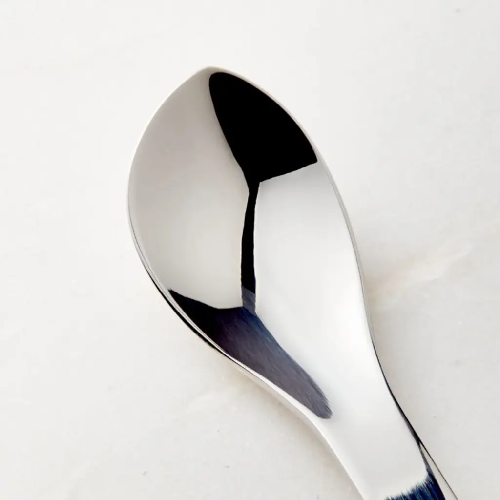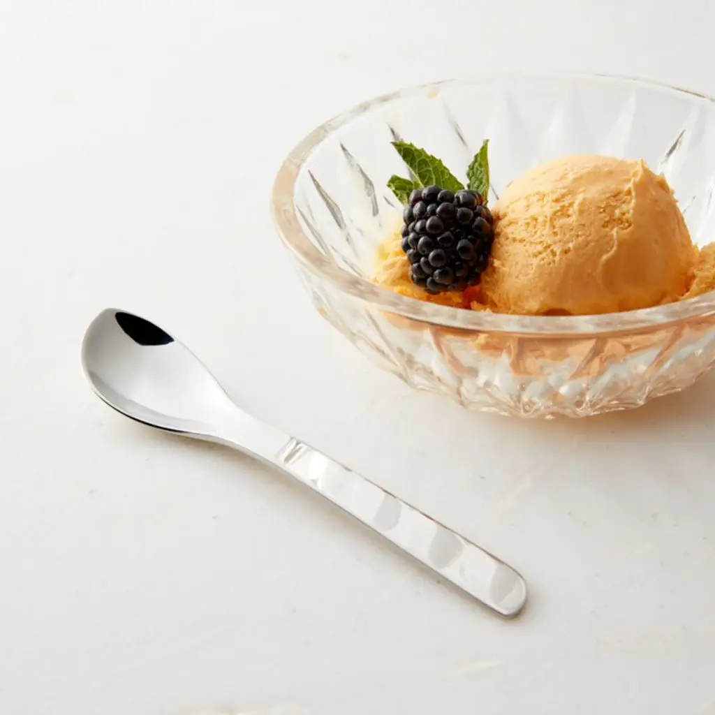 Made of the highest quality 18/10 stainless steel for superior performance, polished dessert spoon sports an asymmetrical silhouette designed by architect Katja Bremkamp for Mepra, a family-owned company founded in 1947. Crafted near the Italian Alps, Mepra flatware is frequently found in fine-dining restaurants due to its design, quality and exceptional durability.