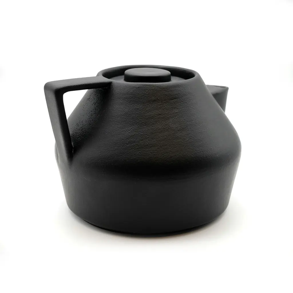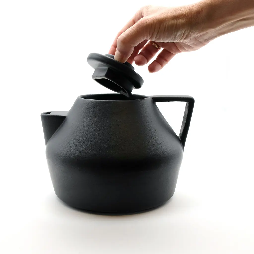 The M.U.M. is a ceramic teapot characterized by clean, soft geometric lines. The surfaces are silky to the touch, making them enjoyable to use. The teapot’s lid seamlessly integrates into the overall form, maintaining a minimalist and refined profile. This collection blends function and elegance, offering a simple yet thoughtful design.