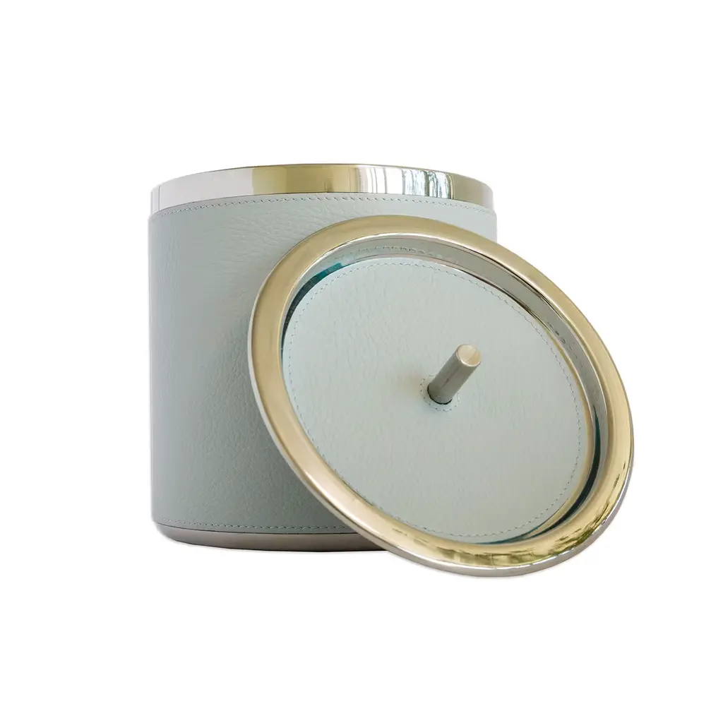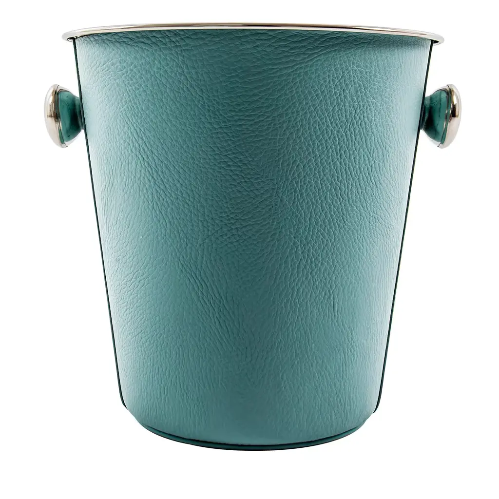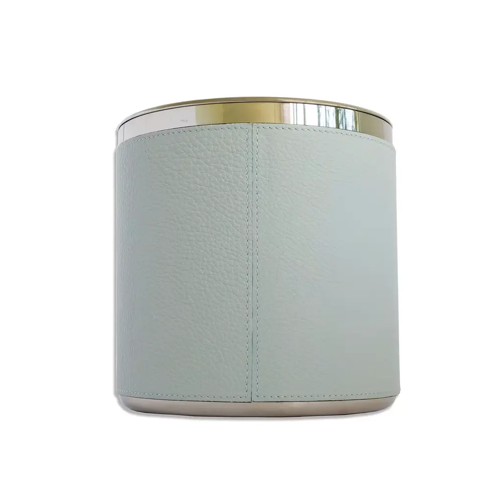 This extraordinary ice bucket from the iconic Machiavelli series of opulent designs features a simple yet stunning shape of timeless sophistication. Fashioned of stainless steel, it is covered by hand with precious full-grain leather rendered in a delicate light blue shade. Completed with lid. Available in 13 other colors, please check the Artemest catalog for details.