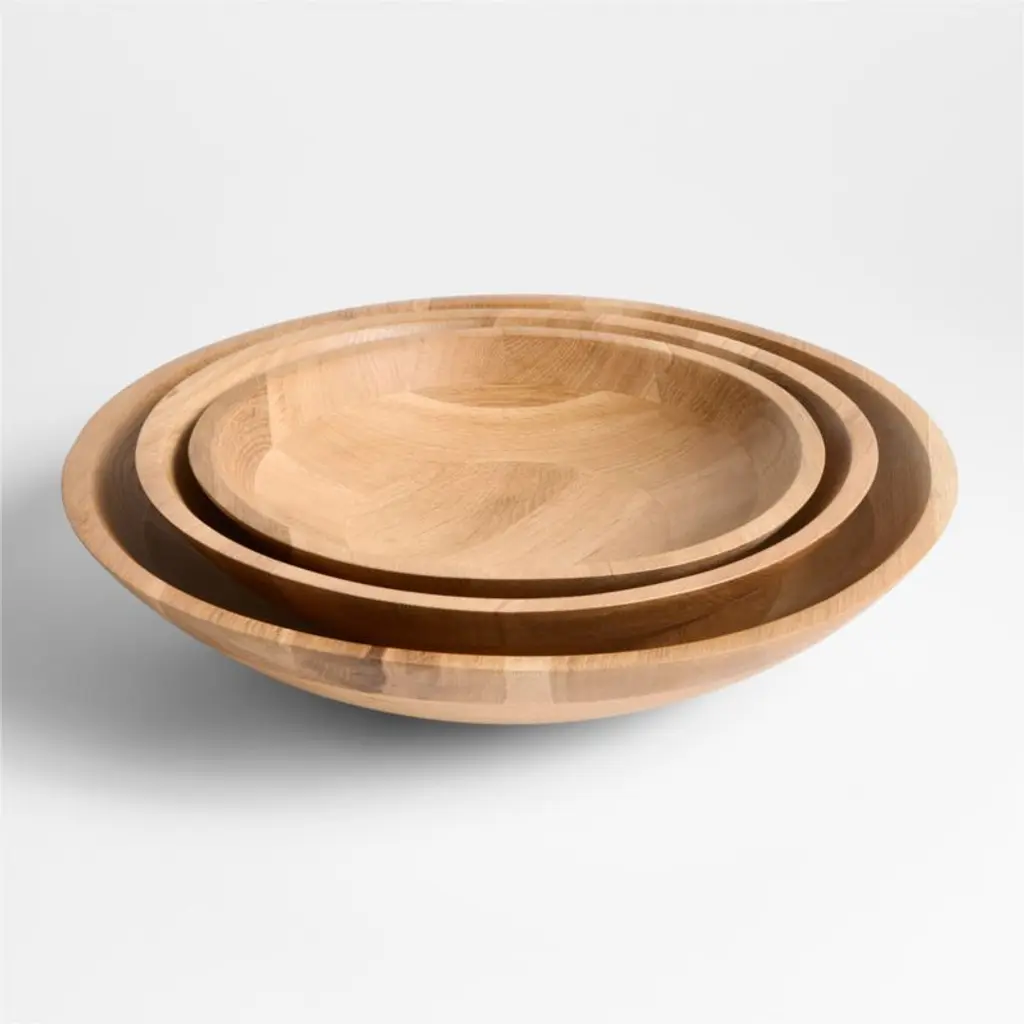 Designed for casual gatherings, our Madeira serving bowl makes a relaxed presentation of gorgeous salads and more. The wide, shallow silhouette looks modern and generous while ensuring toppings don't sink to the bottom. Hand-finished by skilled artisans, the sustainably sourced oak wood has an organic warmth we love on grazing tables and effortlessly chic dinner tables. The small size suits snacks or individual salads, the medium is perfect for a family and the large serves a crowd. Elevated upon a subtle foot, each gorgeously grained bowl is one of a kind.
