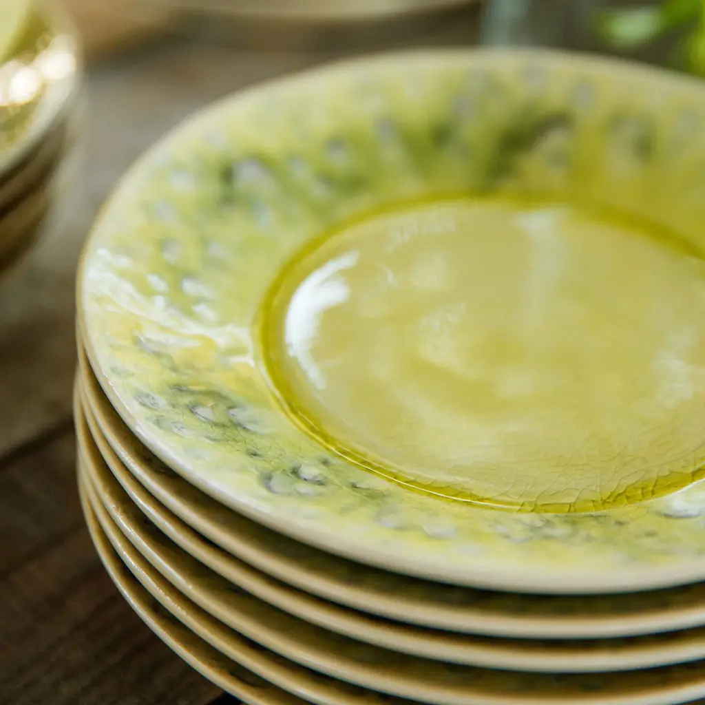 Made in Portugal, this Set of 6 Madeira Salad and Dessert Plates is inspired by nature's vivid and unique displays of color. The Madeira Collection features a reactive crackled glaze surface for an elevated approach to stoneware dinnerware in a variety of colors that are made to be mixed and matched. It can be used as either a dessert plate or salad plate, as they're generally very similar in size.