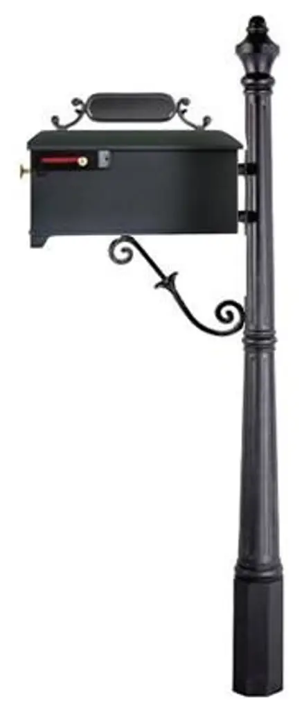 Lewiston Mailbox post system with fluted base and ball finial(no address plates or numbers), WhiteOur Lewiston Collection mailbox(no address plates) is made from rust-free cast aluminum with a durable weather resistant finish and comes with post, decorative ball finial and fluted base.Cast aluminum white powder coated mailboxDecorative fluted baseBall finial mounts to top of postAdds an elegant look to your homeAdd our Lewiston Locking Mailbox Conversion Kit for added securityProduct Dimension (WxDxH) inch: 8" x 20" x 5'' 2"Color: White