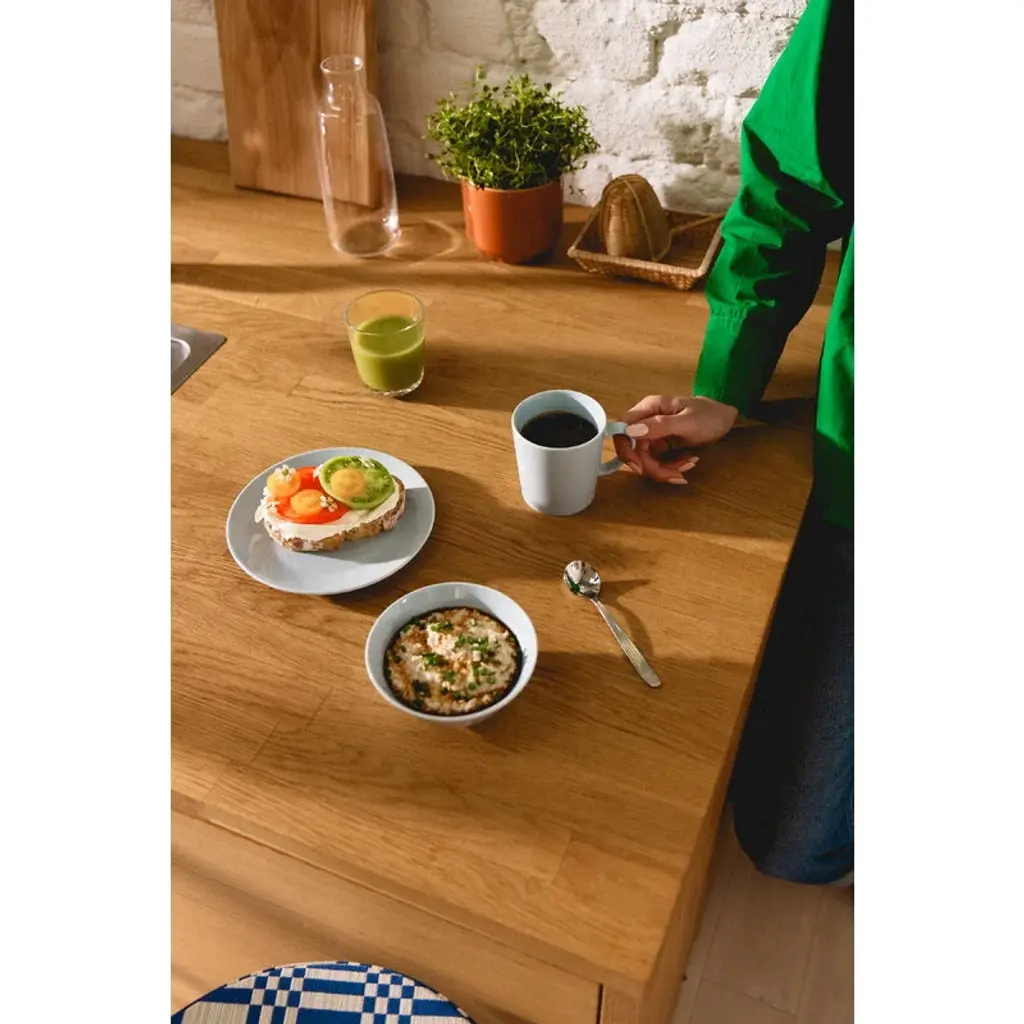 Arabia’s Mainio plate gives kitchens and table settings a touch of timeless Finnish design with a contemporary spirit. The 25-centimeter size makes it ideal as a dinner plate for a wide range of dishes or as a serving plate for shared food. The Mainio tableware collection is designed to bring beauty and practicality, especially to small kitchens and urban homes. The essential elements in its product design were versatility, durability and stackability: besides dining, the ceramic tableware is designed for preparing and storing food, and the plates can be used as lids for the bowls or oven dishes.