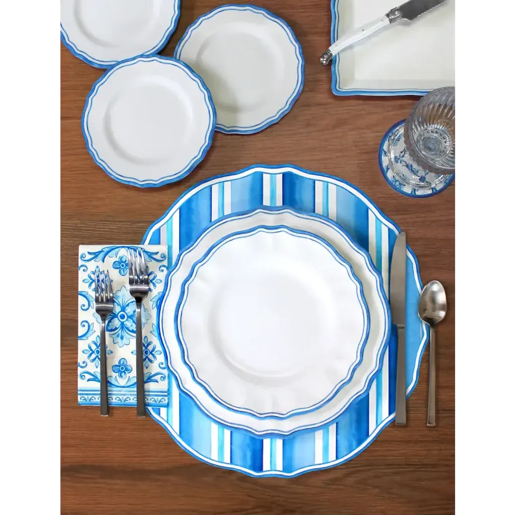 Beautifully crafted with textured surface treatments and exceptional weights, Le Cadeaux's signature melamine dinnerware is often mistaken for real ceramic Italian pottery. Ideal for outdoor and large group entertaining, Le Cadeaux's exclusive collections are inspired by the French and Italian countrysides, designed in Los Angeles, and made in Asia.