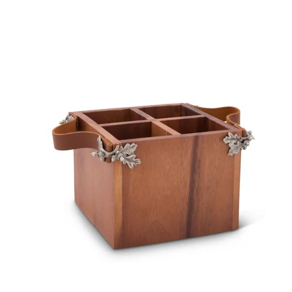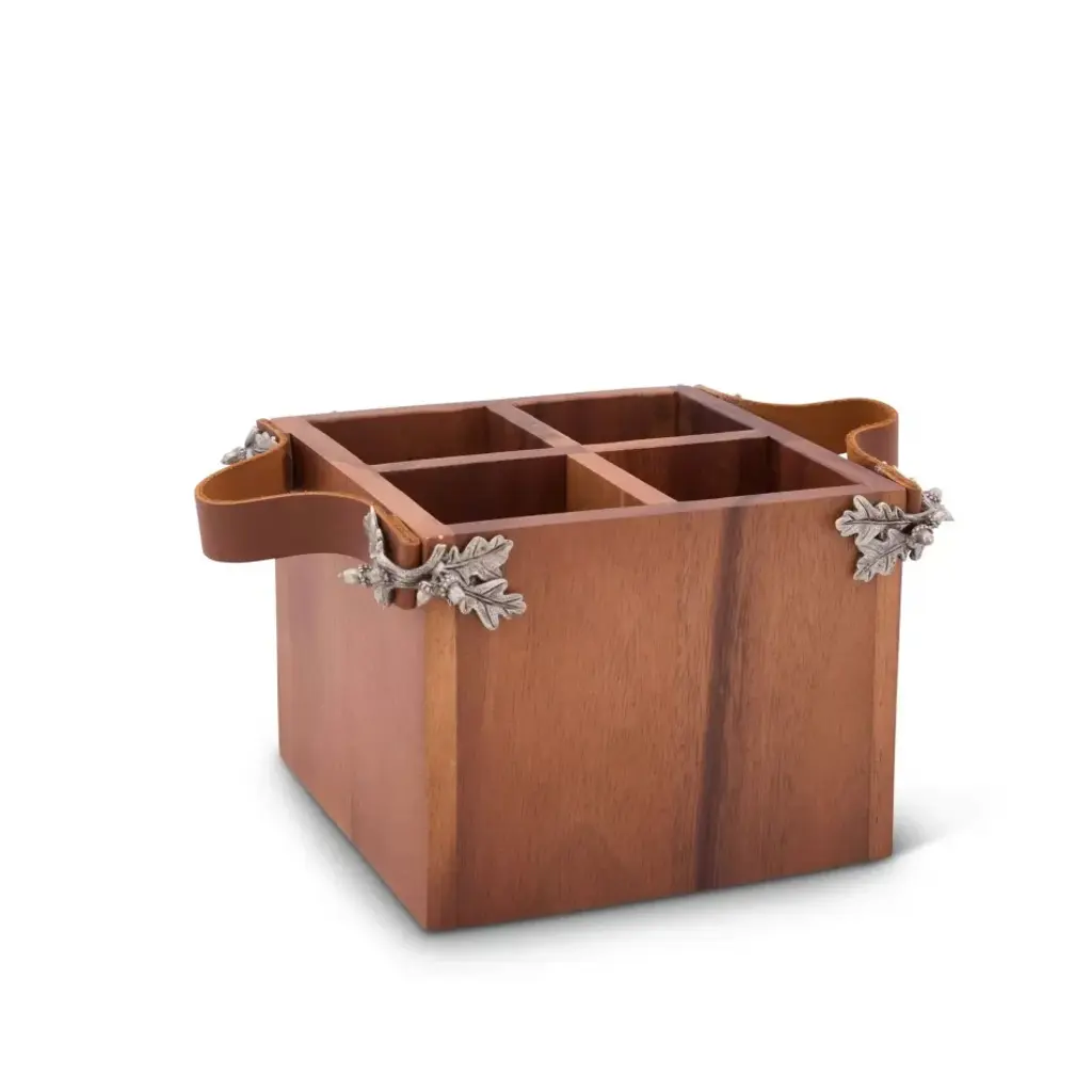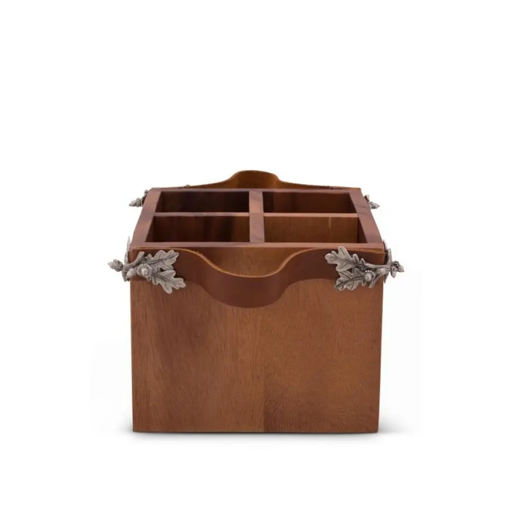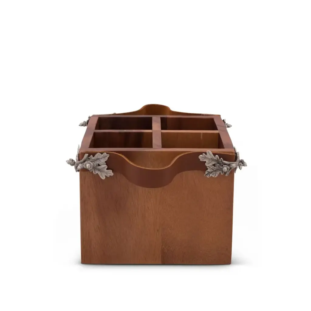Majestic Forest Acorn Oak Leaf Flatware Caddy - Square Box Wood
