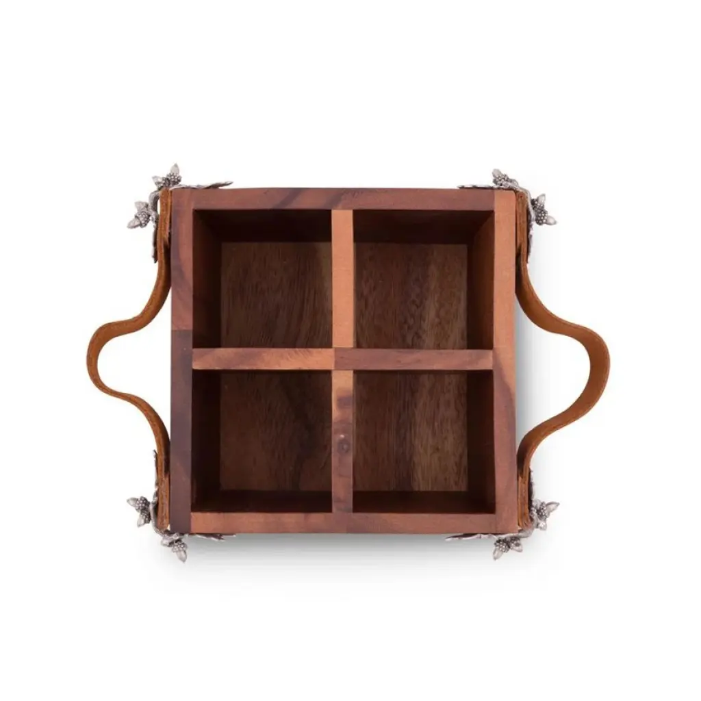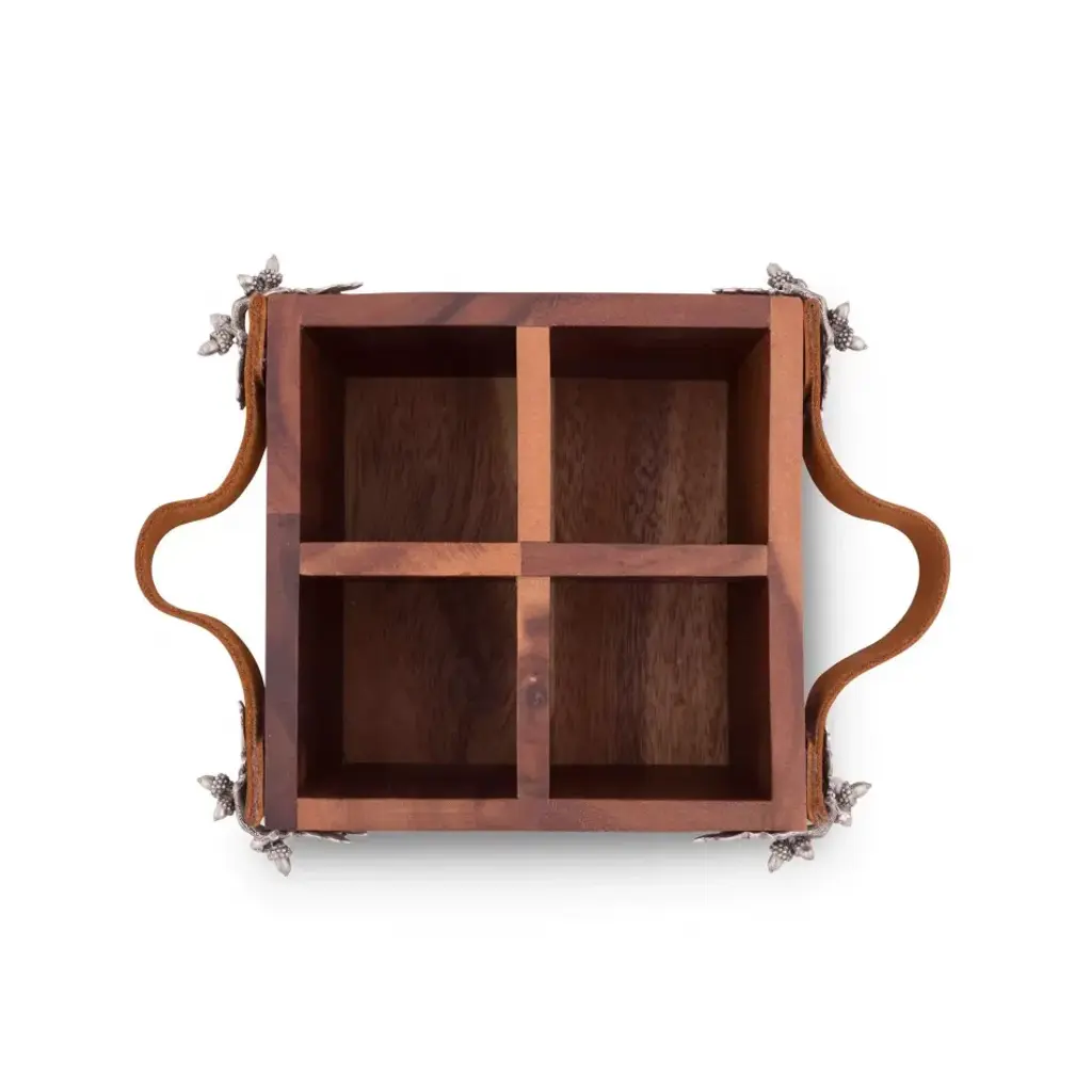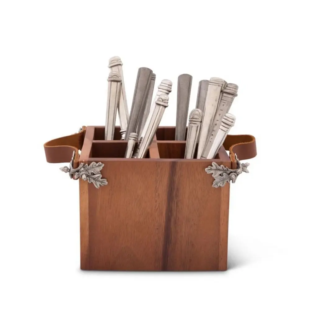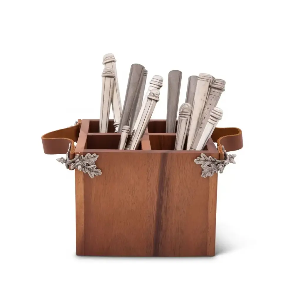 Majestic Forest Acorn Oak Leaf Flatware Caddy - Square Box Wood