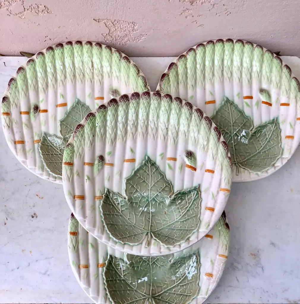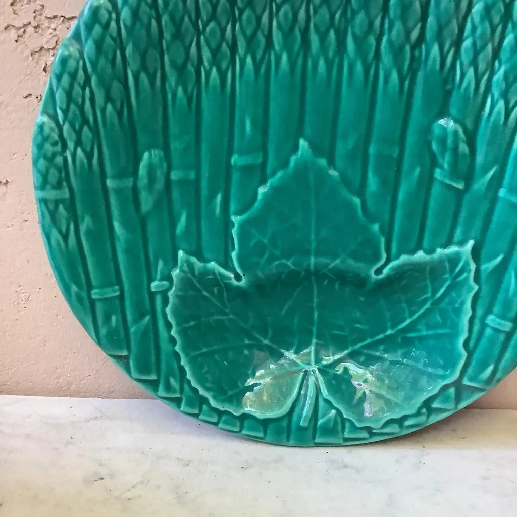 Majolica Asparagus Plate With Leaf Saint Amand, Circa 1930
