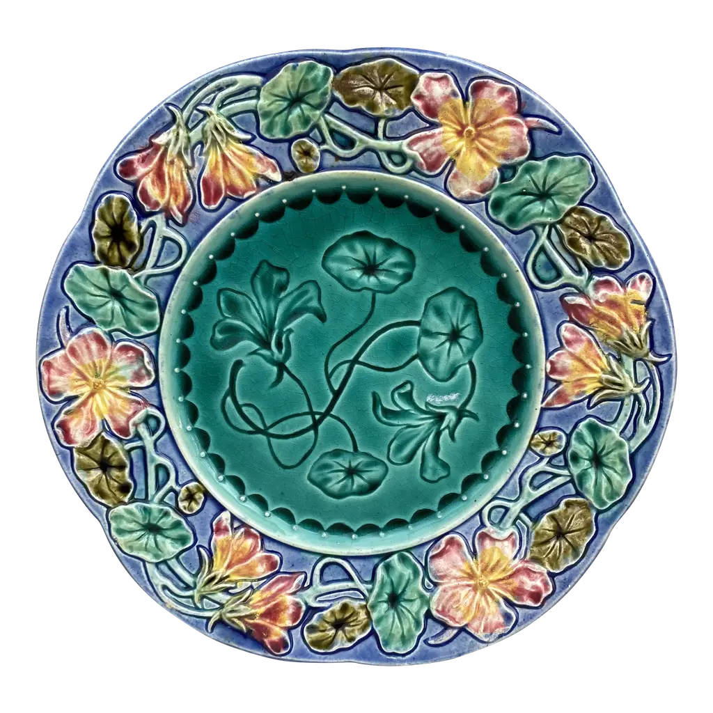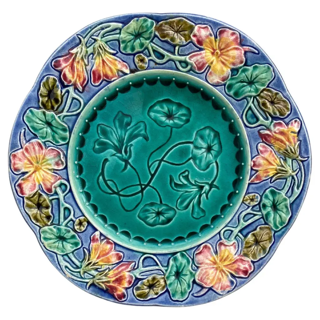 Majolica Strawberries Plate Sarreguemines, Circa 1870