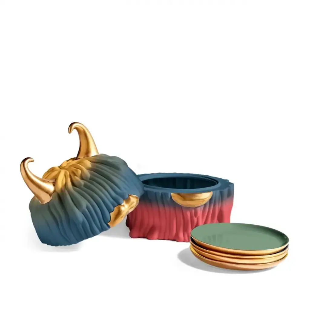 Malibu Monster Box + Plates (Set Of 4) Special Edition Box: 5.5 X 6.5" - 14 X 17cm; Plates: 4.25" - 11cm