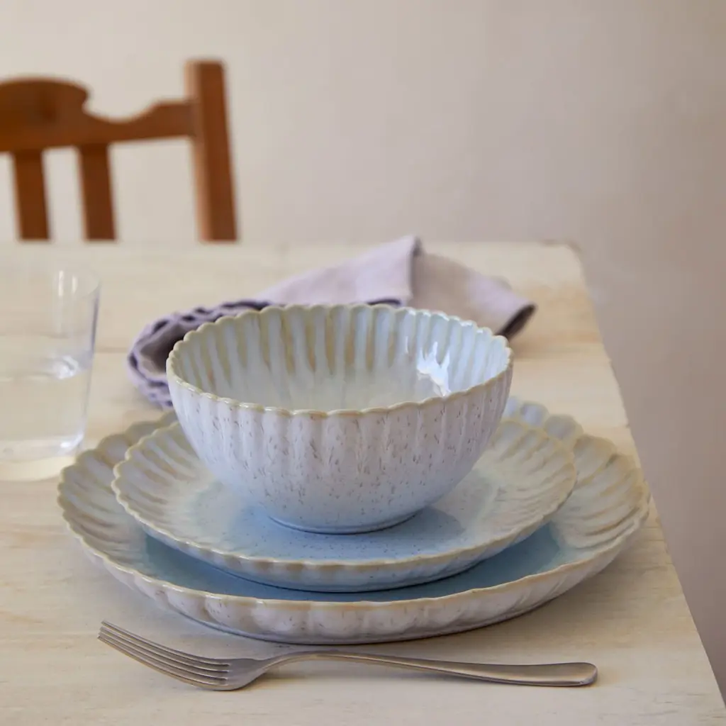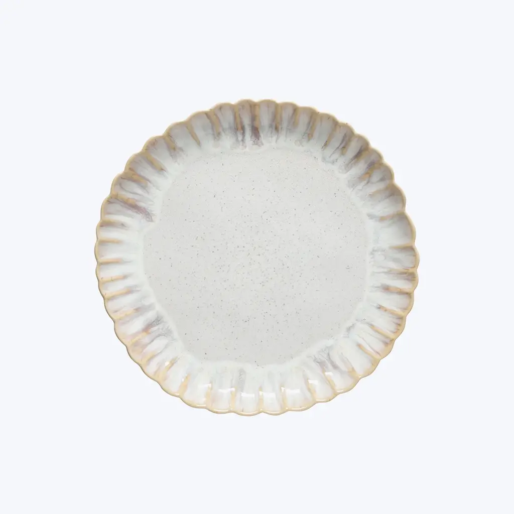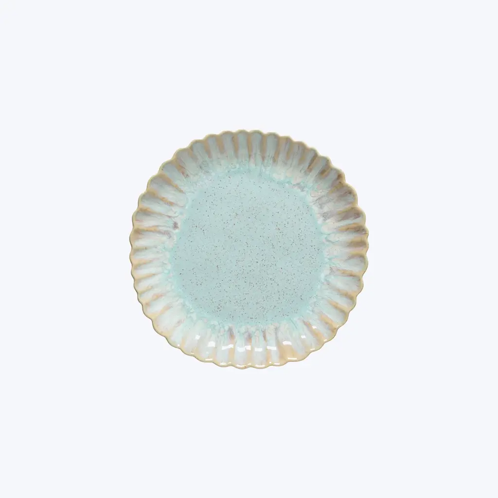 Made in Portugal, this Set of 6 Mallorca Glazed Salad Plates is inspired by the natural landscape of the Mediterranean island. Featuring elements of serene waters, golden sands, and sea cliffs, the Mallorca Collection of ceramic dinnerware showcases reactive glazes with seashell scalloped edges.Can be used as either a dessert plate or salad plate, as they're generally very similar in size.