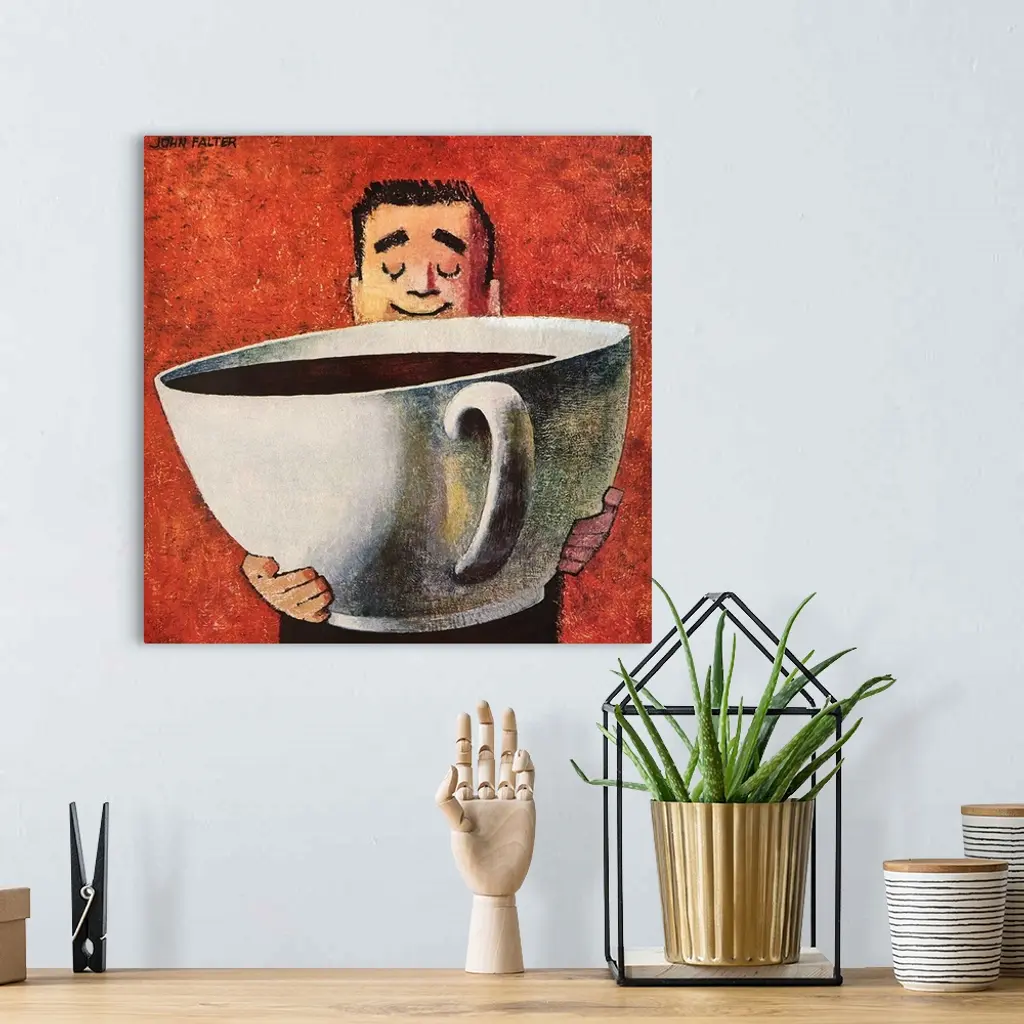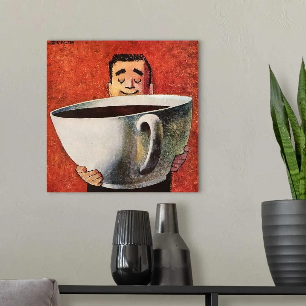 Man and Huge Coffee Cup wall art for home and office decor. Discover canvas art prints, photos, mural, big canvas art and framed wall art in GreatBigCanvas.com's varied collections.