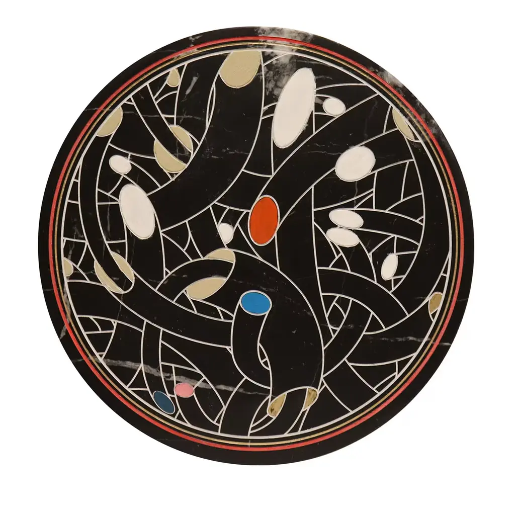 This collection showcases round or oval plates, suitable for serving or hanging, where the signature graphics are intricately engraved into marble and then meticulously hand-painted. Each piece reflects a blend of artistic flair and craftsmanship. Carefully crafted in Italy, this plate stands as both functional item and work of art, perfect for enhancing any space with its beauty and individuality.