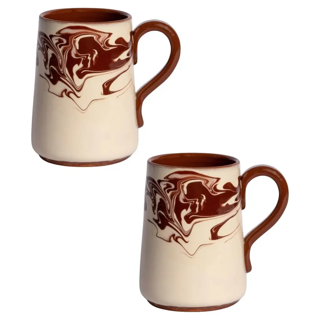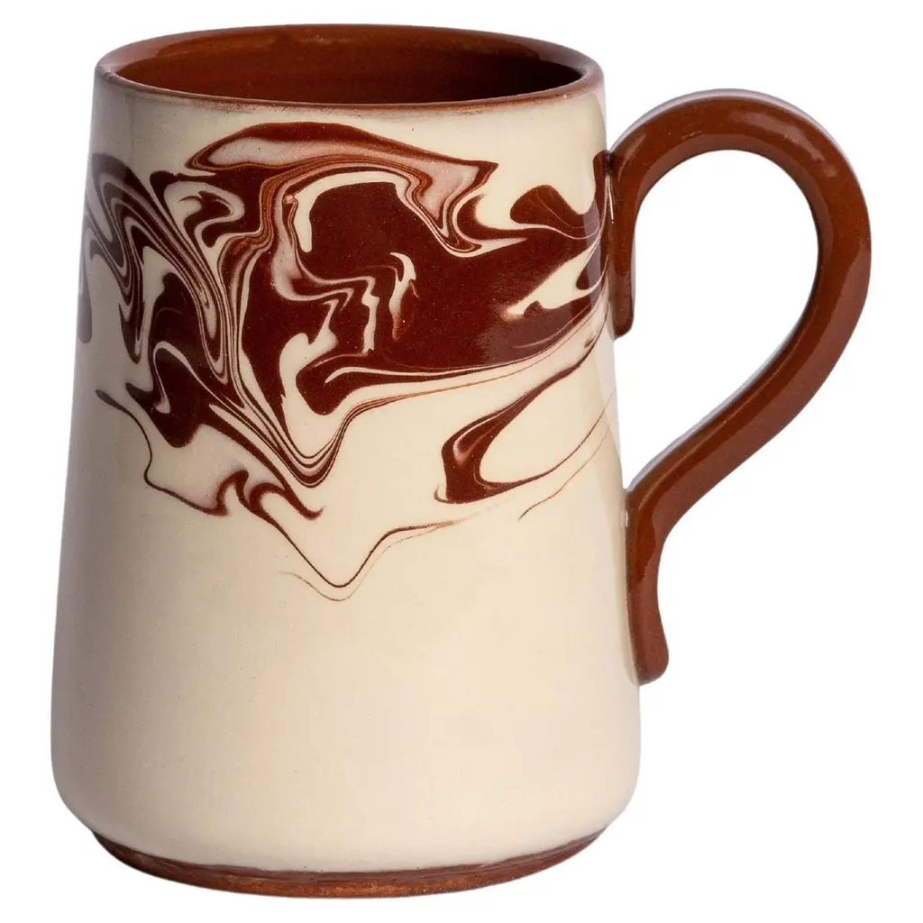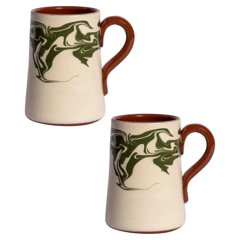 Handcrafted in Bulgaria, our Marbre collection brings a rustic elegance to any table setting, with its dreamy marbled pattern. Available in blue, green and brown, the Marbre collection comprises of dinner plates, side plates, large bowls, small bowls, jugs and mugs.12.5cm Height, 8cm mouth4.9" Height - 3.1" width of mouthDishwasher safe.Founded by fashion journalist Louise Roe, Sharland England is a celebration of all things nostalgic. Elegant wicker, antique chairs & romantic, pleated cushions - every item is thoughtfully handmade. We believe in slow, meaningful design to create beautiful items that last.