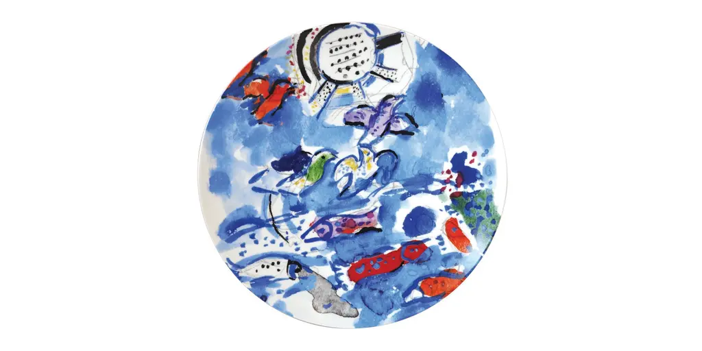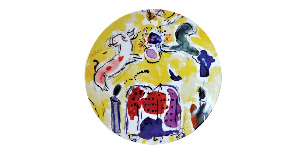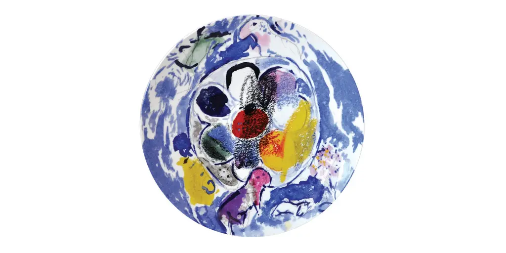In 1959, renowned artist Marc Chagall collaborated with master glassmakers to create twelve stunning stained-glass windows for the Hadassah-Hebrew University Medical Center in Jerusalem. In partnership with the artist, Bernardaud interprets the original designs—representing the twelve tribes of Israel—in rich color on fine porcelain dishes.