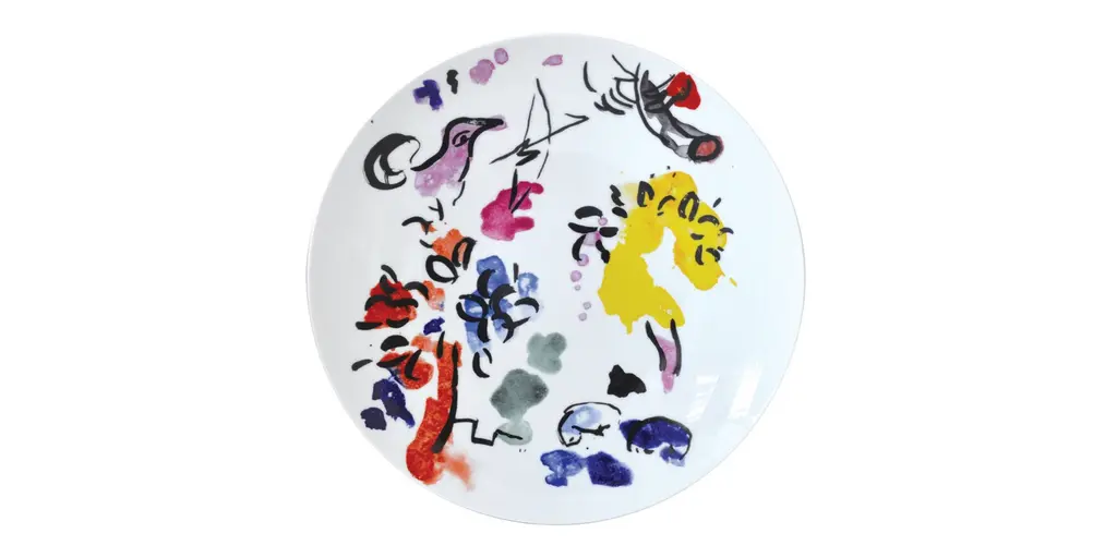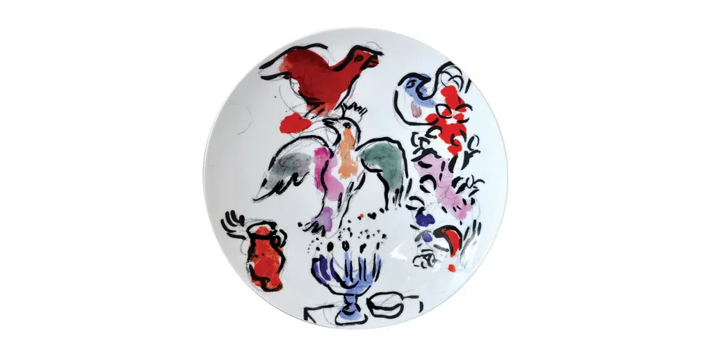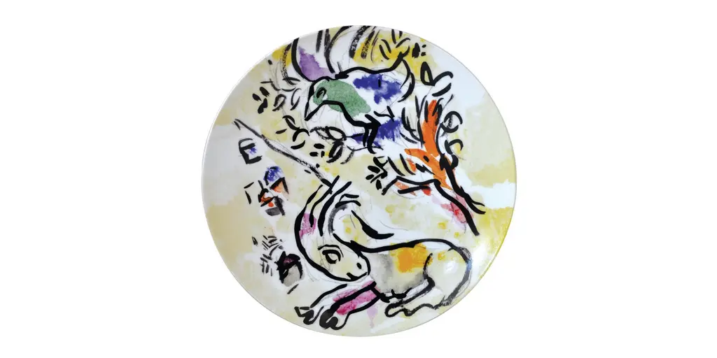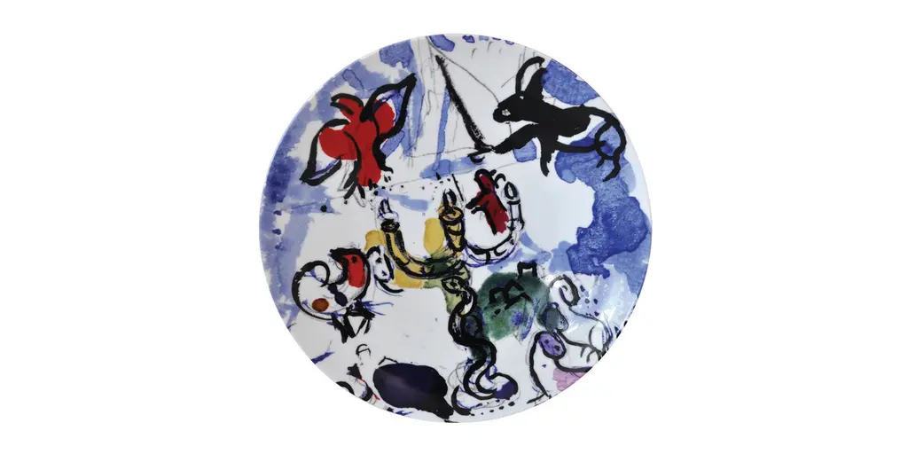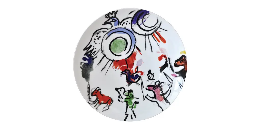 In 1959, renowned artist Marc Chagall collaborated with master glassmakers to create twelve stunning stained-glass windows for the Hadassah-Hebrew University Medical Center in Jerusalem. In partnership with the artist, Bernardaud interprets the original designs—representing the twelve tribes of Israel—in rich color on fine porcelain dishes.